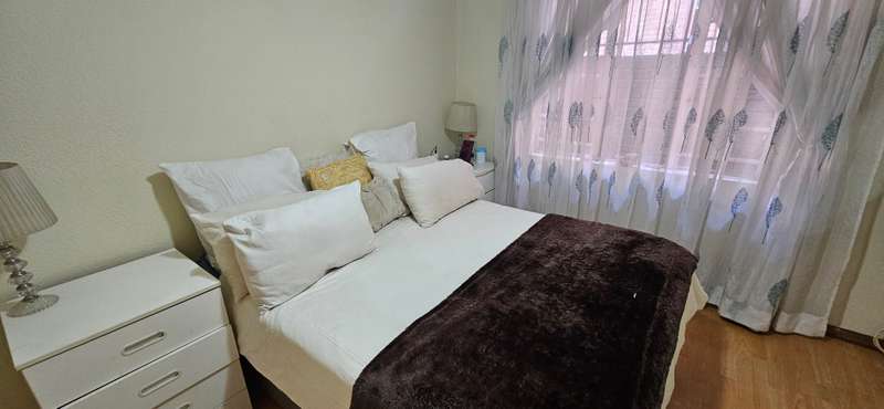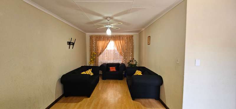 This unit is situated within a secured complex and features an open plan kitchen and lounge, 2 bedrooms with built in cupboards and a full bathroom. The kitchen features ample cupboard space, under counter oven extractor fan and space for appliances. This unit has pre-paid electricity as well. Complete with 1 garage and is well secured with 24 hour response, CCTV and electric fencing on complex boundary walls. Situated close to amenities and easy access to main roads and highways.