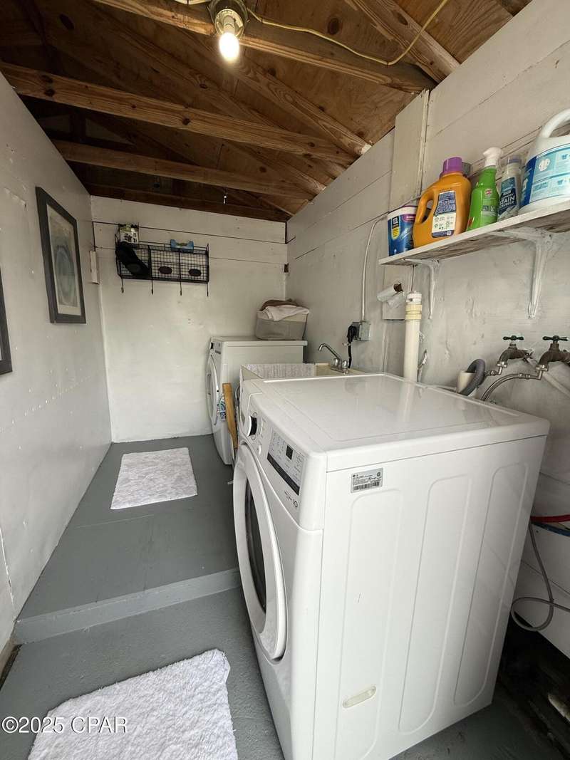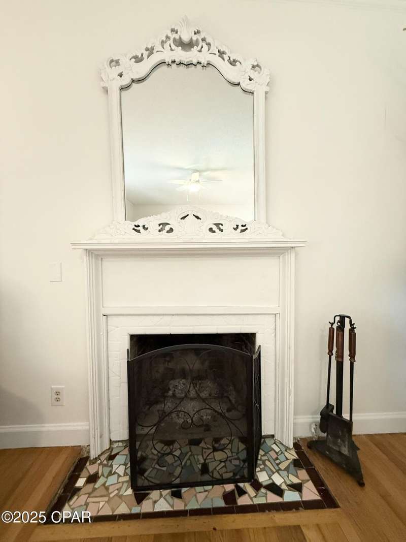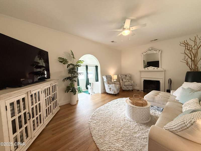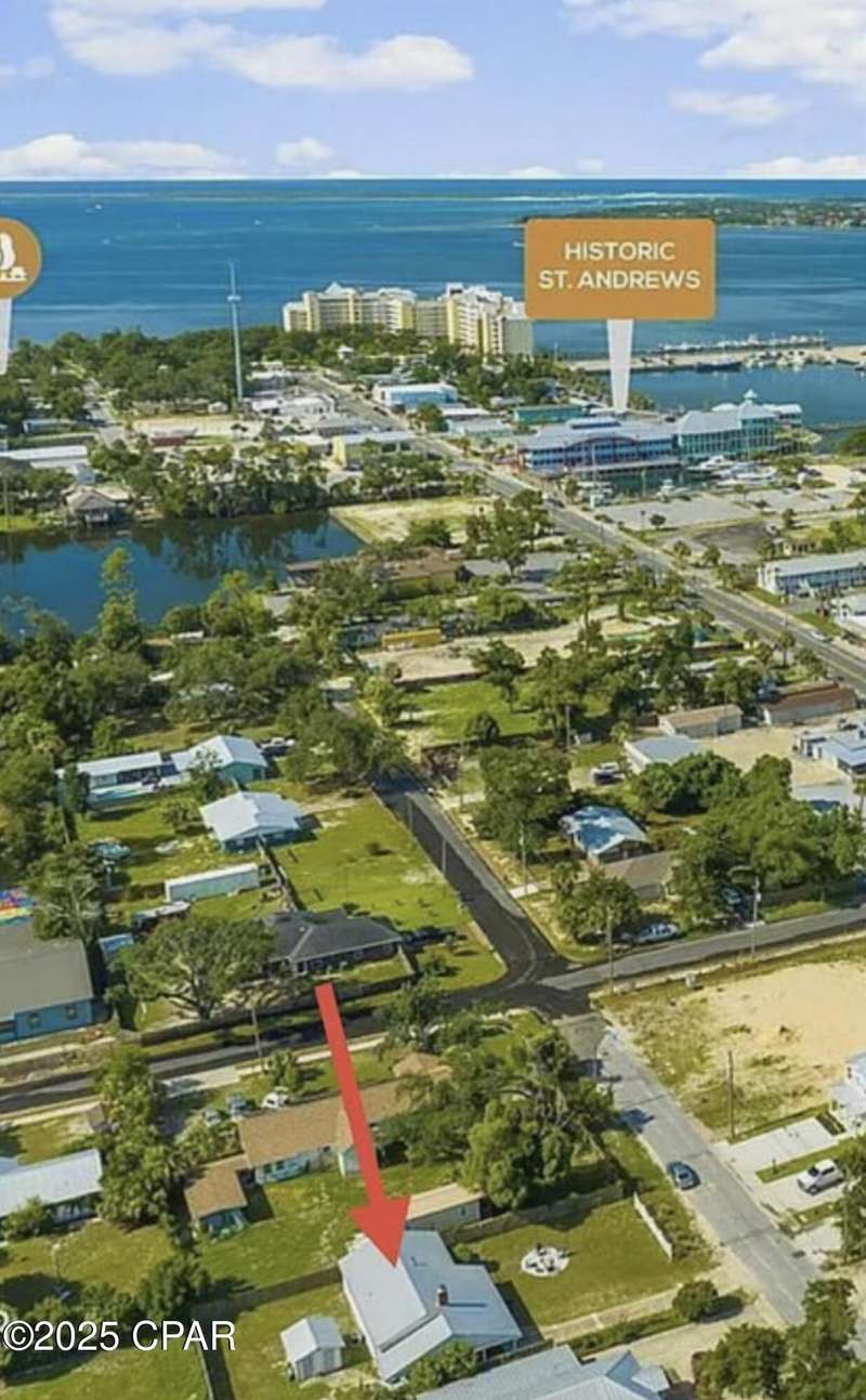 Absolutely charming 2-bedroom, 1.5-bath home on a spacious lot in the heart of St. Andrews! Just a short walk to the Bay, St. Andrews Marina, and all the great local restaurants and shops--this location can't be beat.The large living room features beautiful hardwood floors, 10-foot ceilings, a cozy wood-burning fireplace, and arched doorways that open into an enclosed Florida room with views of the oversized front yard and firepit area--perfect for relaxing or entertaining.The updated kitchen boasts a new gas cooktop, new refrigerator, new dishwasher, new butcher block countertops, a roomy breakfast nook, and a walk-in pantry. You'll love the built-in cabinetry throughout the home, offering plenty of character and extra storage.Recent improvements include a new gas heater, new ceiling fans, fresh paint, new washer and dryer, new attic insulation, updated windows, and a durable metal roof. There's also a shed for additional storage.This home blends classic charm with thoughtful updates--come see it for yourself!