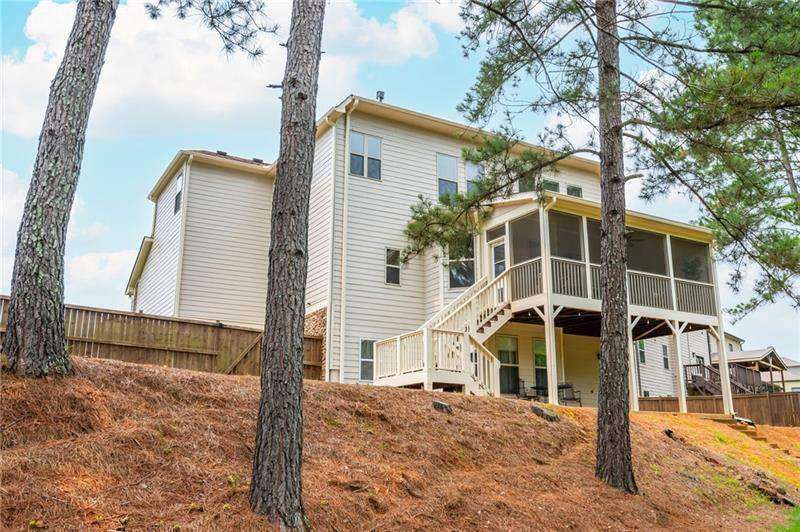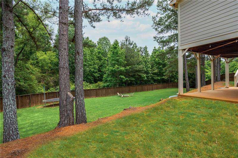 Welcome to this stunning David Weekley built, craftsman home on arguably one of the best cul de sac, private lots in the highly desirable Telfair neighborhood! The recently painted exterior showcases neutral, designer colors that complement the craftsman architecture. The foyer is flanked by the large, open dining room and a front flex room which can be used as an office, play room, or 6th bedroom. With gleaming hardwoods extending throughout the main level, the wide open floorplan from the kitchen and eating area to living room offers the perfect space for entertaining! The kitchen showcases white cabinetry and granite countertops with stainless appliances. Off the kitchen and eating area is a stunning extended covered deck with wood paneled ceiling and recessed lighting. The view from the deck is second to none with the oversized back yard which backs to a wooded space unable to be developed! Upstairs, the spacious owner's suite is a perfect retreat with the en suite boasting a large soaking tub, double vanities and tiled shower. There are three additional bedrooms and two full bathrooms on this level as well as a large loft space. The finished basement with stained concrete flooring is a large open space perfect for a living area and game tables. A bedroom and full bathroom can be found in the basement as well as a kitchenette and large, unfinished storage space. The doors lead out to the back yard with fire pit and endless possibilities. With award winning schools and close proximity to GA400, Vickery Village, The Collection, Halcyon and the new Cumming City Center, this home truly has it all!