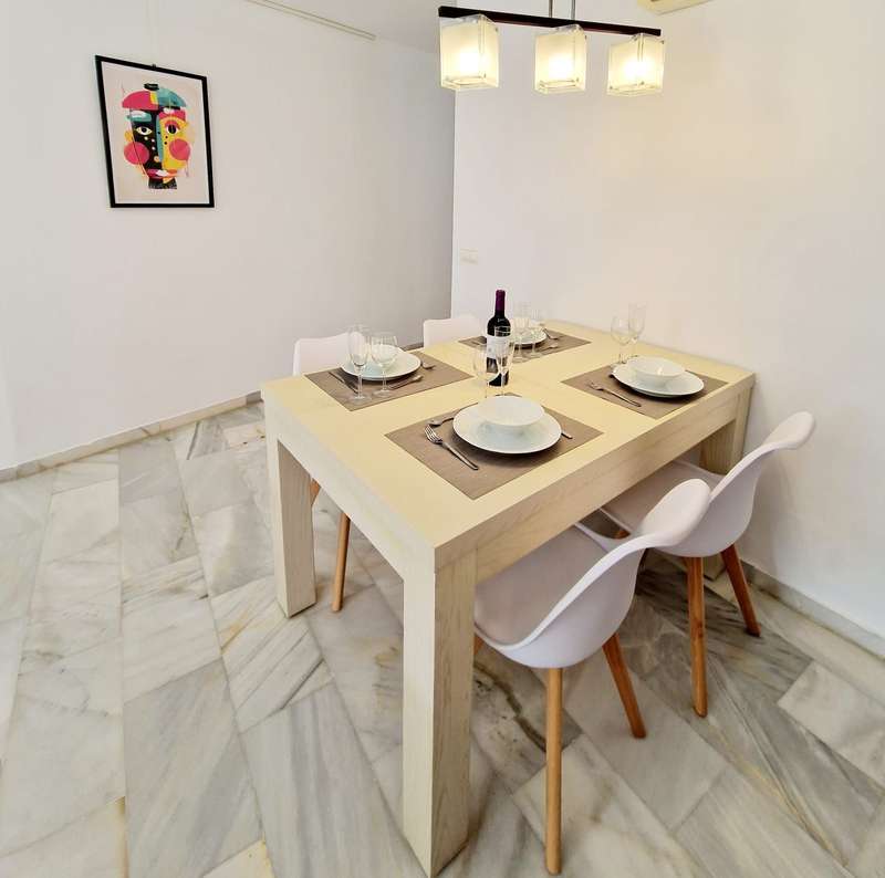 72 m² apartment in very good condition, located right in the centre of Fuengirola and just 100 metres from the seafront promenade—an ideal location for anyone wanting to enjoy daily life by the sea with every service close at hand. The property features two bright bedrooms, a full bathroom, and an independent utility room that adds extra comfort and organisation. It includes a fully equipped independent kitchen and a spacious living-dining room, perfect for creating both a cosy lounge area and a separate dining space. The apartment is rented fully furnished and ready to move into. It comes with air conditioning, mosquito screens on all windows, and a pleasant southwest orientation that provides natural light throughout most of the day. Several balconies surround the property, offering cross ventilation and small outdoor spaces ideal for enjoying the local climate. The building has a lift and there is no parking space included. Available for long-term rental. Two months’ deposit requi