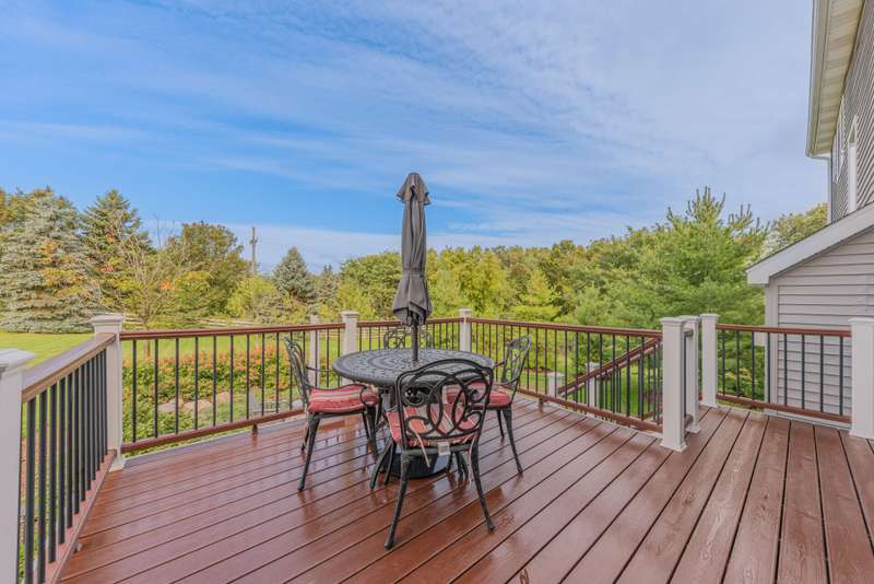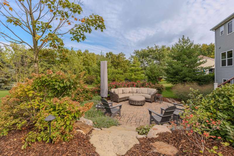 From the moment that you enter off the charming, covered front porch it is apparant at every turn that this original homeowner meticulously loved and maintained this 4 Bed/ 3 1/2 Bath contemporary colonial in highly desirable Saline Estates! Bright and open, this meticulous home has a great flow and showcases a two story foyer with large picture window, recently refinished maple hardwood flooring throughout most of the entire 1st floor, a formal dining room,and a front flex room with large window (currently being used as a 2nd home office). You will love the contemporary architectural vibe of the great room with its floor-to-ceiling stone fireplace, the rod iron stairway that wraps around to the loft, and the multiple windows looking out the the private and well landscaped backyard. The gourmet kitchen has custom maple cabinetry, tile backsplash, granite countertops, a large walk-in pantry, double ovens, and is great for family life and entertaining as it both opens to the great room and has a door off of the breakfast nook leading out to the maintenance free Trex deck with steps leading down to a landscape enclosed brick paver patio and outdoor living space. Other main floor amenities include a half bath, laundry/mud room with tile floor and cabinetry, and whole house audio system. This home's ample natural lighting continues upstairs with the impressive view of the main floor living area and the added living space of a loft/reading nook. French doors open to the primary bedroom with vaulted ceiling, large windows, a walk in closet, and private bath with tile flooring, dual sinks, granite countertop, spa tub, and large shower with floor to ceiling tile and glass Euro door. The second and third nicely sized bedrooms share a Jack and Jill bathroom, and the 4th bedroom is even larger and has a full bathroom! The unfinished lower level is plumbed for a future bathroom and has two egress windows. Now...the landscaping and hardscape...WOW!!! From the beautiful stone walkway with decorative stonework to the stone steps leading down to the private, paver patio that is surrounded by mature and manicured bushes, perrenial flowers and trees--no expense was spared! The location of Saline Estates can't be matched--you are minutes from Downtown Saline and Ann Arbor, it is a short walk to shopping, restaurants and a coffee shop, low Pittsfield township taxes and award winning Saline schools. This lovingly maintained home will not disappoint!