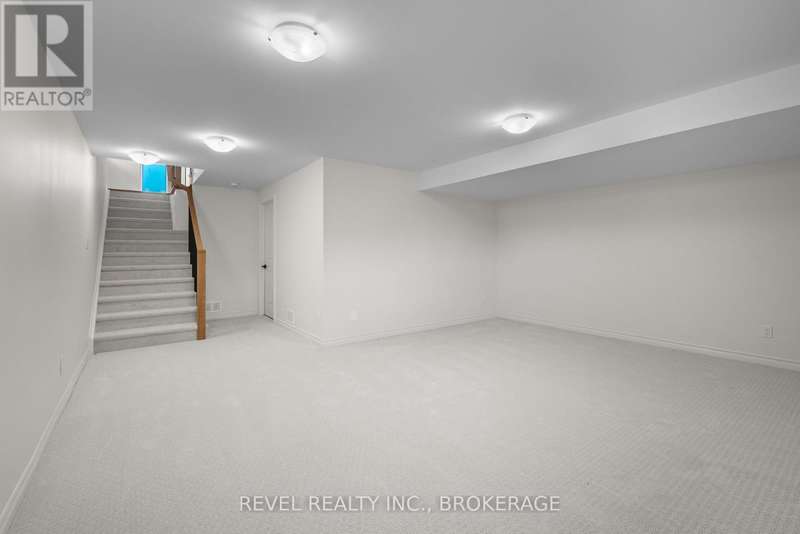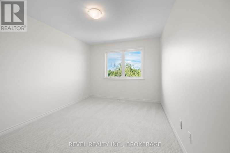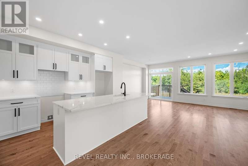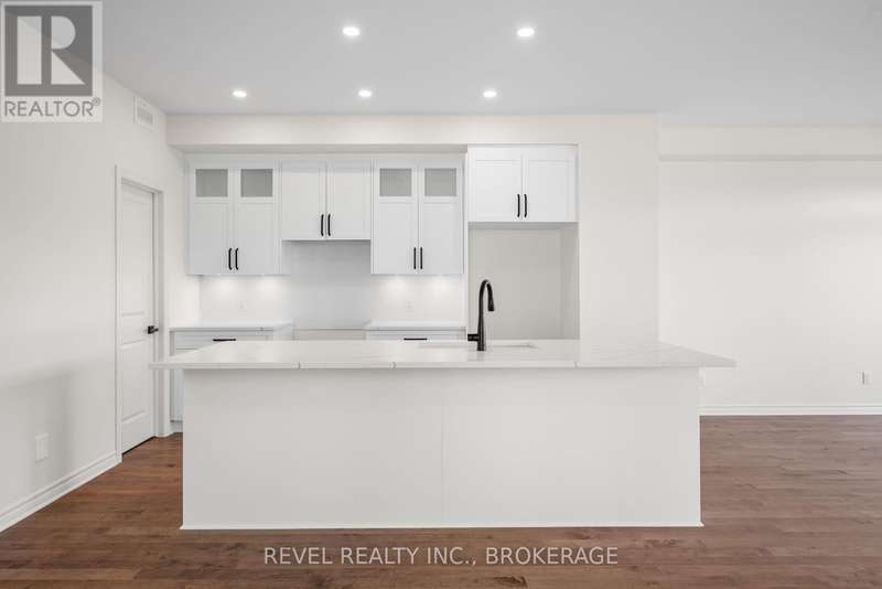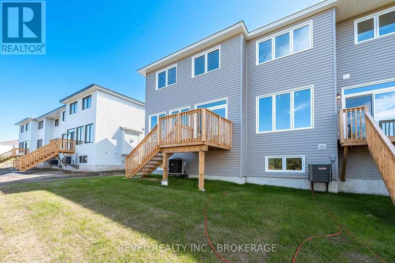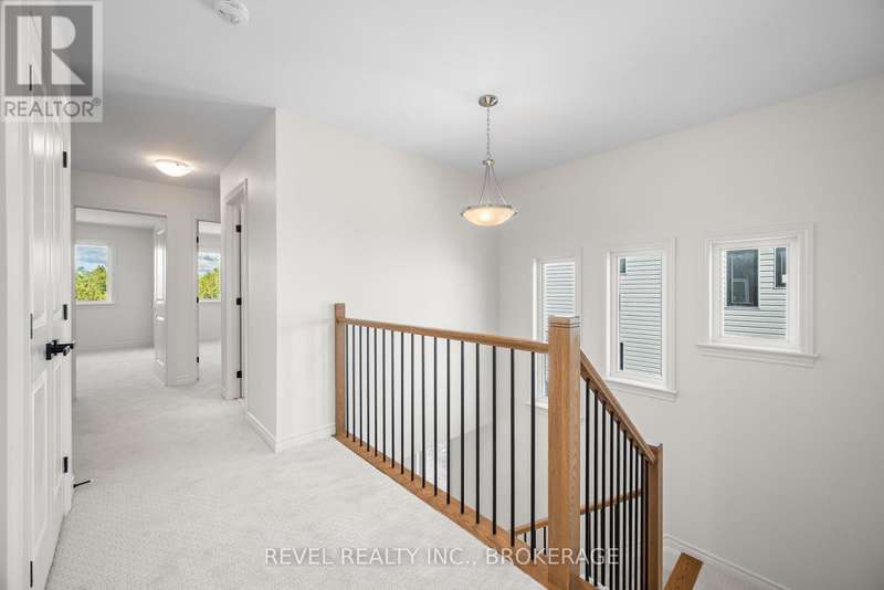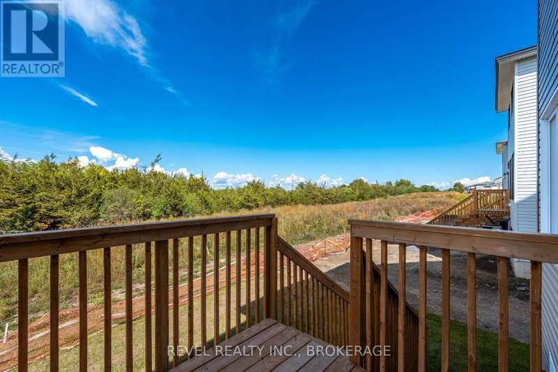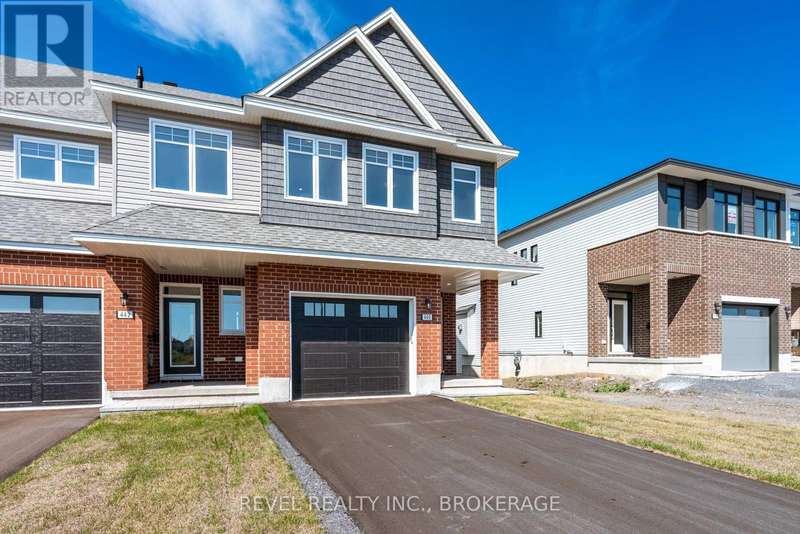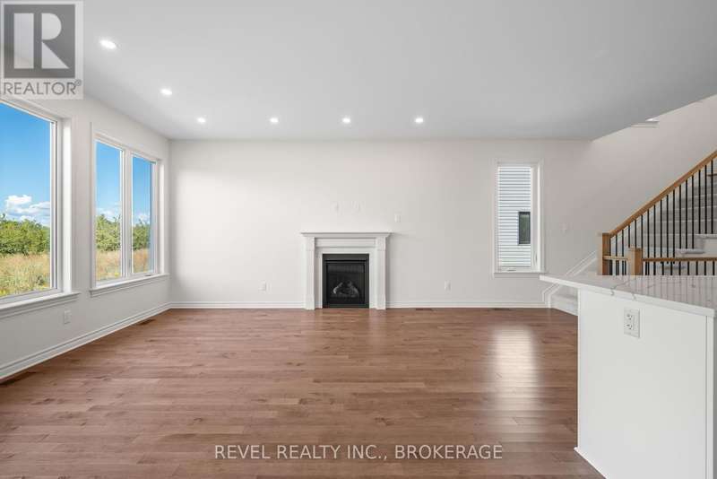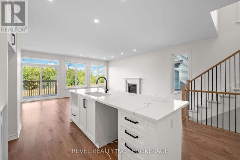 Here is "The Camden", a move-in ready end-unit lookout townhome offering 2,160 sq ft of finished living space in Kingstons northwest Woodhaven community. The main floor features maple hardwood, quartz countertops throughout, a bright kitchen with white shaker cabinetry, upgraded sink, and walk-in pantry, plus a cozy gas fireplace. The primary suite showcases a spa-like 4-piece ensuite with a freestanding tub and walk-in tile/glass shower. The finished lookout basement, complete with a bathroom rough-in, provides versatile additional living space. This ENERGY STAR certified home is designed for comfort, style, and efficiency. (id:7434)