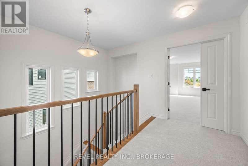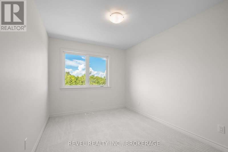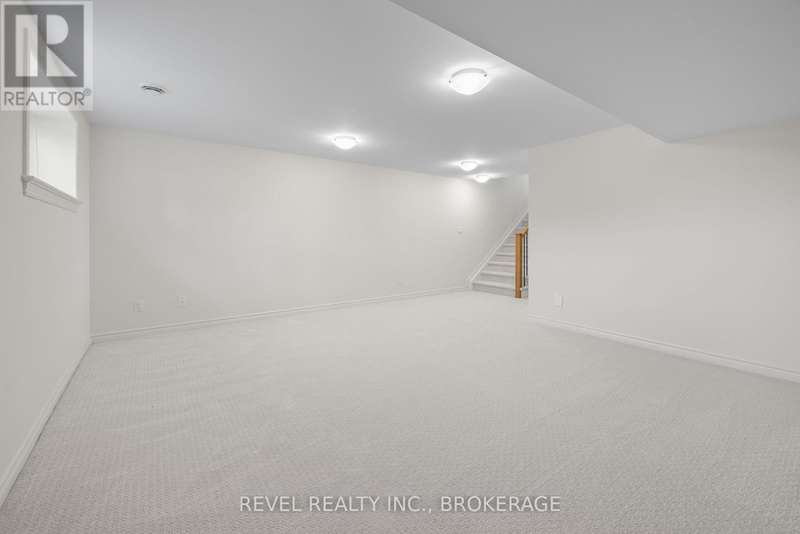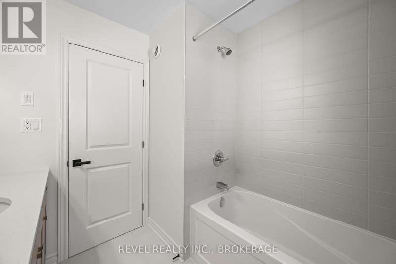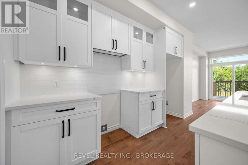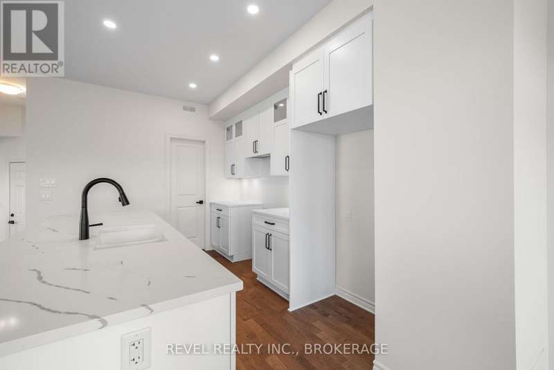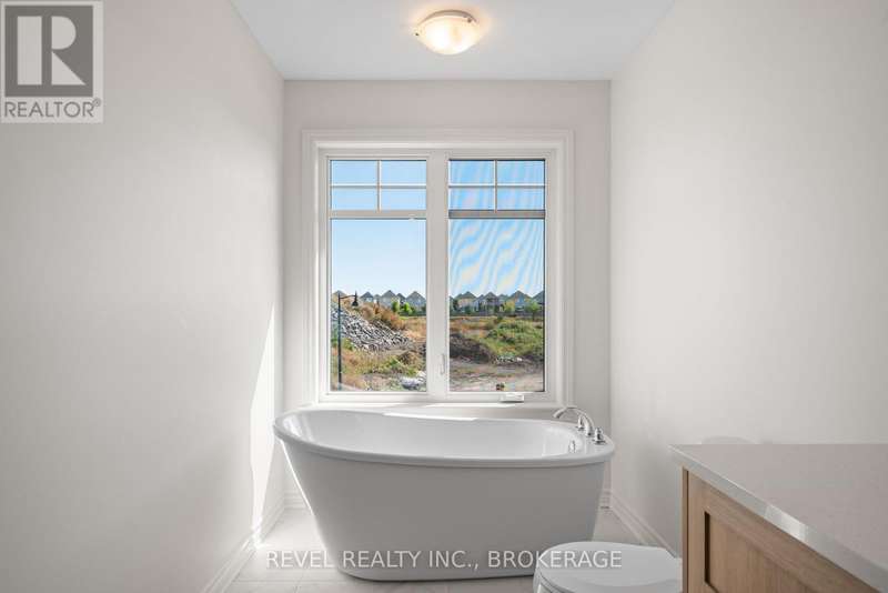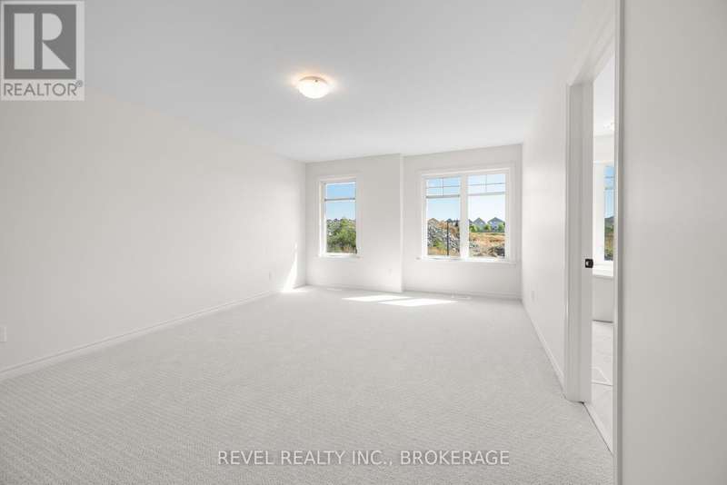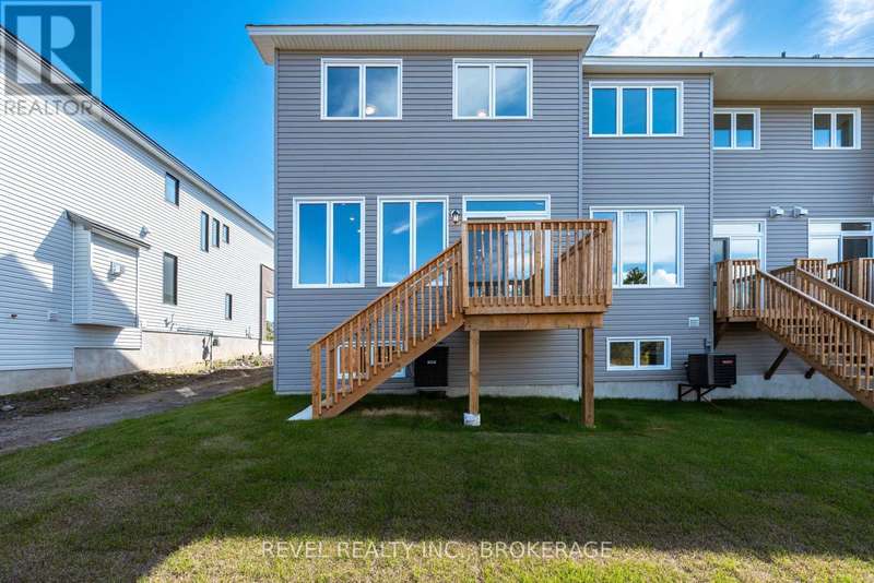 Here is "The Camden", a move-in ready end-unit lookout townhome offering 2,160 sq ft of finished living space in Kingstons northwest Woodhaven community. The main floor features maple hardwood, quartz countertops throughout, a bright kitchen with white shaker cabinetry, upgraded sink, and walk-in pantry, plus a cozy gas fireplace. The primary suite showcases a spa-like 4-piece ensuite with a freestanding tub and walk-in tile/glass shower. The finished lookout basement, complete with a bathroom rough-in, provides versatile additional living space. This ENERGY STAR certified home is designed for comfort, style, and efficiency. (id:7434)