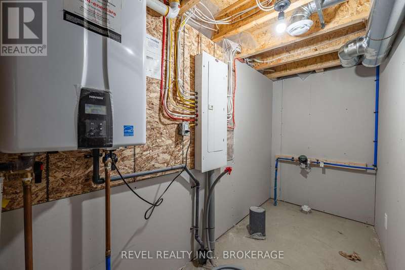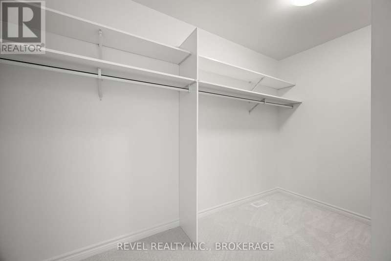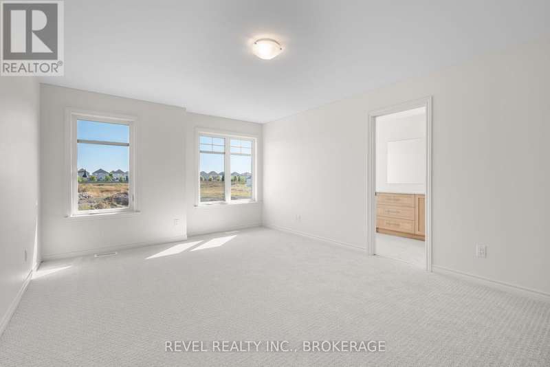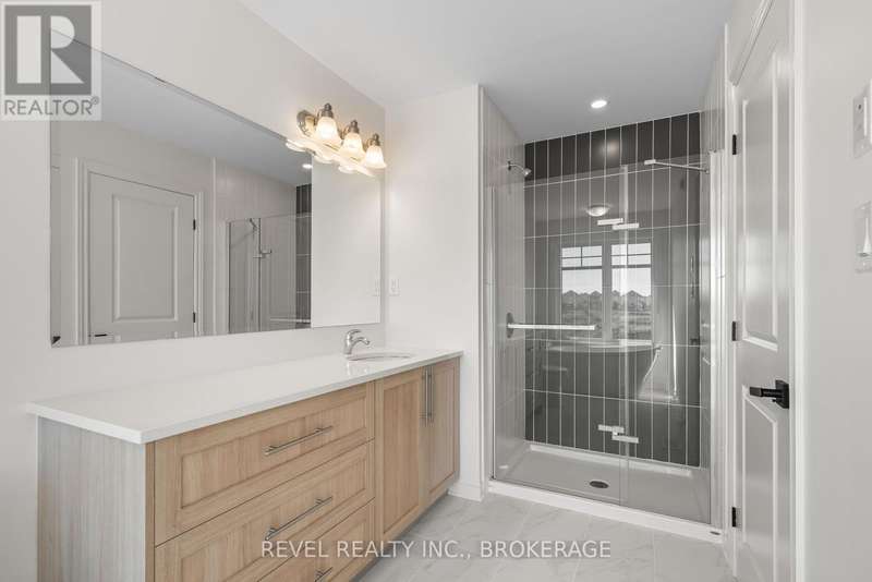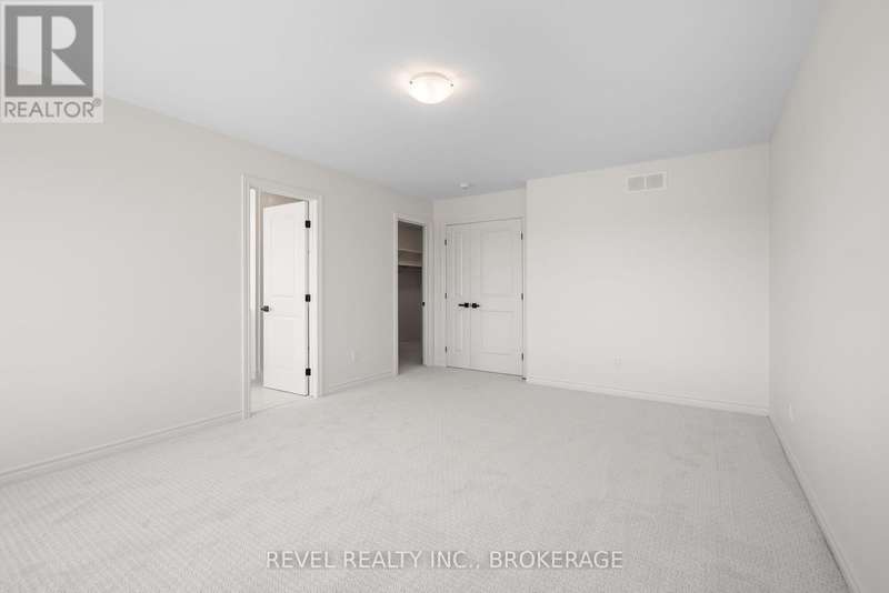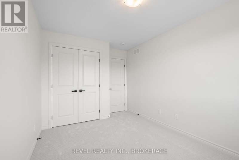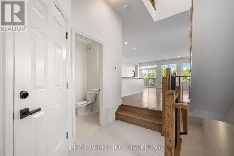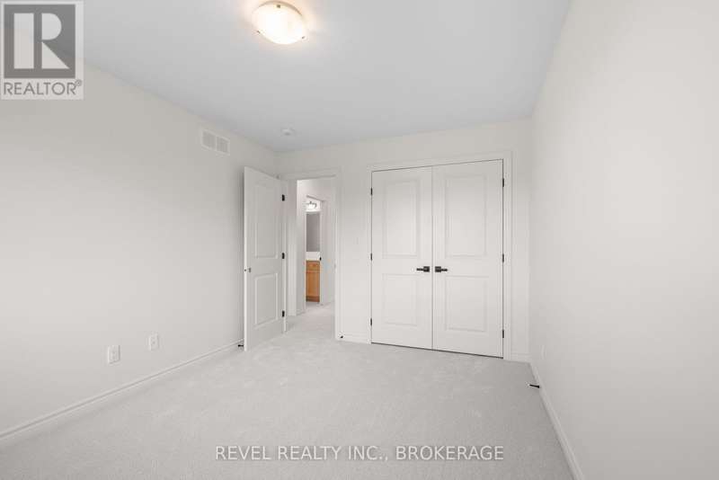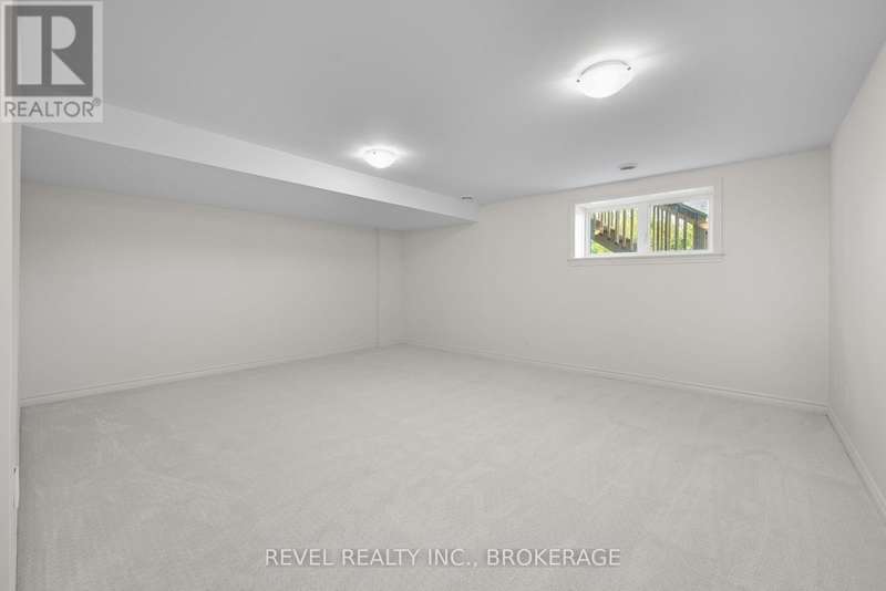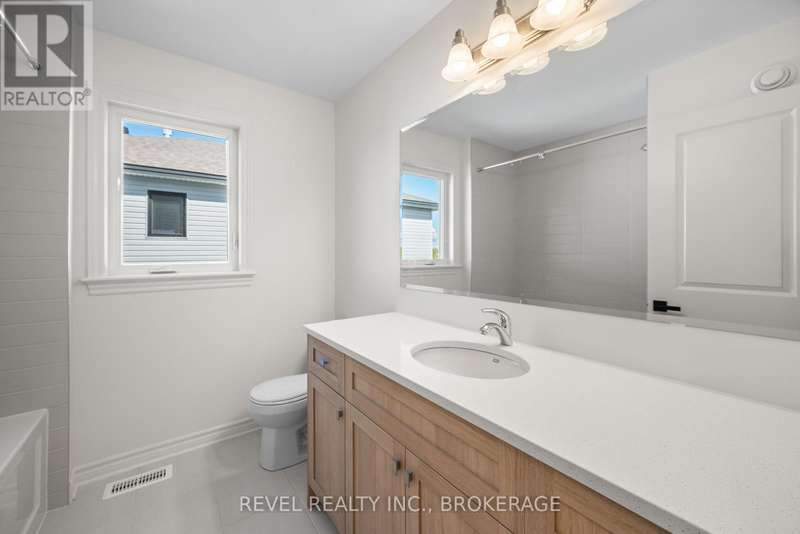 Here is "The Camden", a move-in ready end-unit lookout townhome offering 2,160 sq ft of finished living space in Kingstons northwest Woodhaven community. The main floor features maple hardwood, quartz countertops throughout, a bright kitchen with white shaker cabinetry, upgraded sink, and walk-in pantry, plus a cozy gas fireplace. The primary suite showcases a spa-like 4-piece ensuite with a freestanding tub and walk-in tile/glass shower. The finished lookout basement, complete with a bathroom rough-in, provides versatile additional living space. This ENERGY STAR certified home is designed for comfort, style, and efficiency. (id:7434)