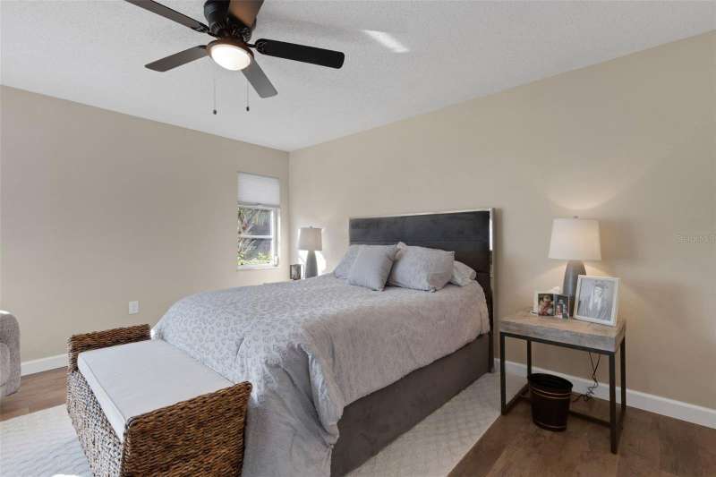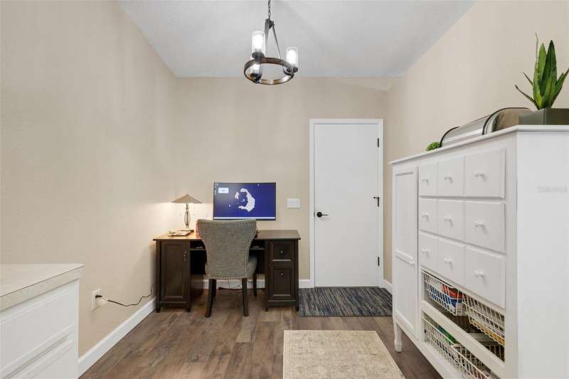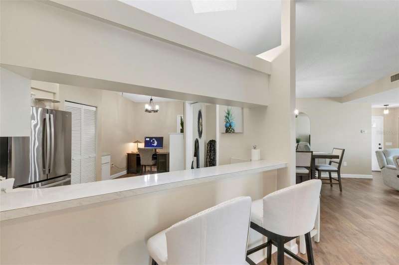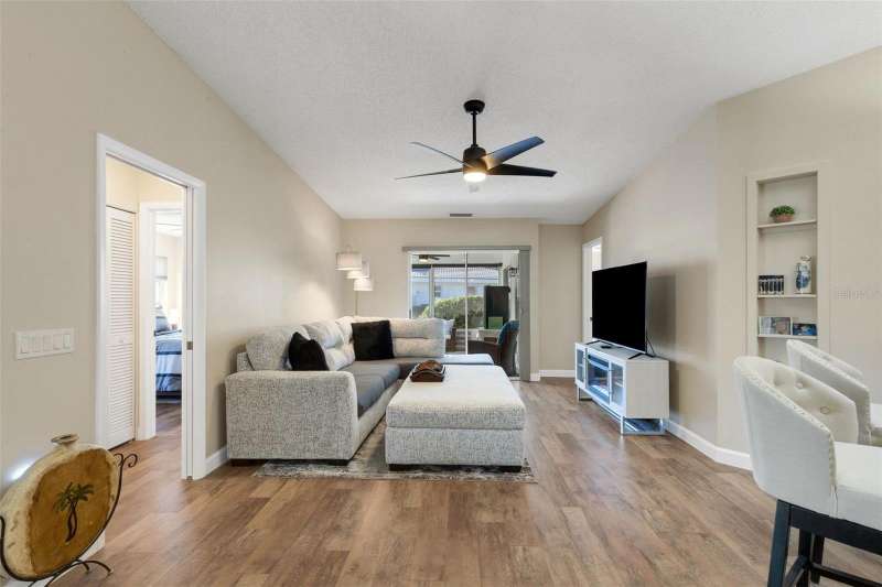 Welcome to lovely Garden Lakes, a beautifully maintained 55+ gated community known for its mature landscaping and friendly neighborhood atmosphere. This inviting two-bedroom villa sits on a corner lot and includes an attached two-car garage. The open floor plan feels bright and spacious with high ceilings and luxury vinyl plank flooring throughout. Both bedrooms have access to the enclosed Florida room, creating a comfortable extension of the living space. The primary suite offers a convenient step-in shower and a large walk-in closet, while the guest bedroom and bath can be closed off with a pocket door for added privacy creating a comfortable second suite when friends or family visit. The kitchen opens to a flexible office or hobby area that adds function and charm. Enjoy an active and carefree lifestyle with a community pool, tennis and pickleball courts, shuffleboard, and a full calendar of social events. Ideally located near University Town Center, Lakewood Ranch, and I-75, Garden Lakes offers easy access to shopping, dining, medical facilities and everything the Sarasota-Bradenton area offers, making it the perfect blend of comfort, connection, and easy Florida living.