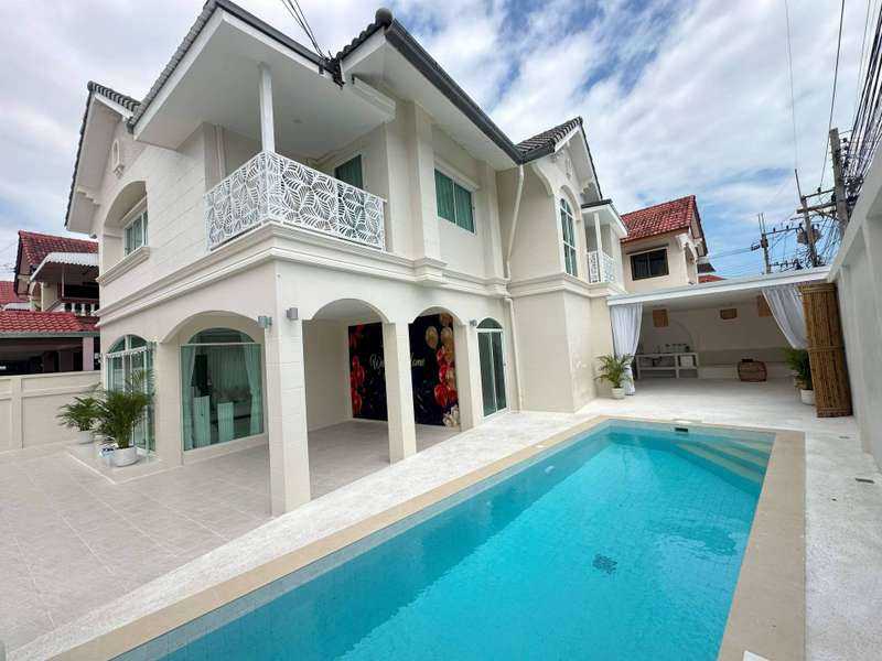 Offered at 9,900,000 THB (reduced from 10.6 million THB), this two-story pool villa is located in a peaceful residential area of East Pattaya, just minutes from international schools and daily conveniences.