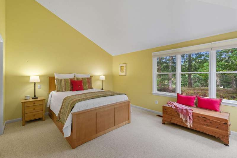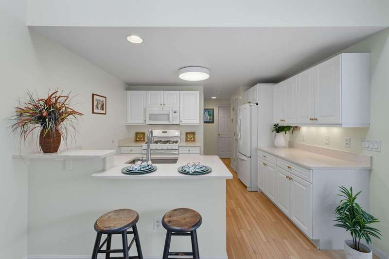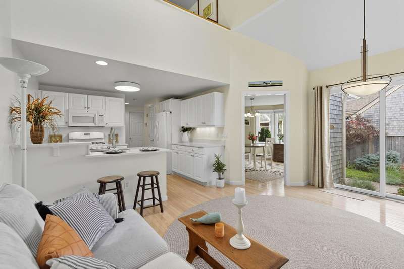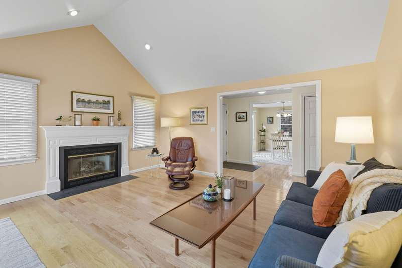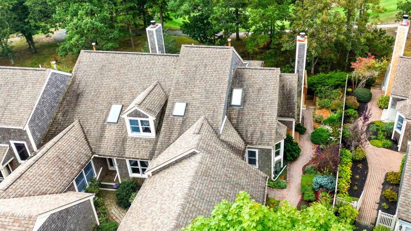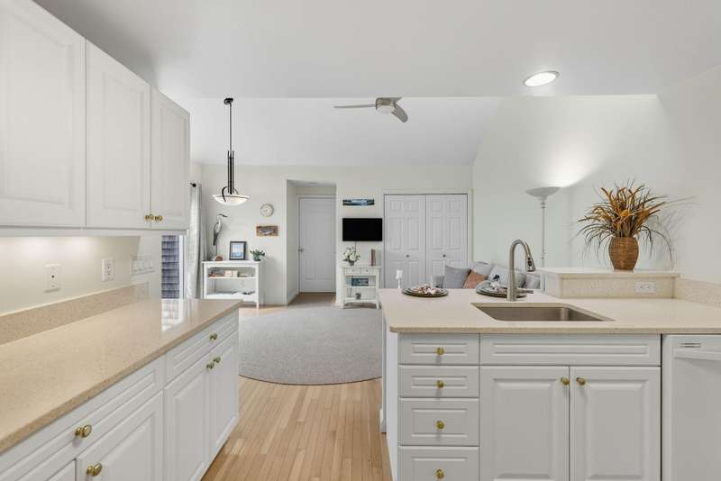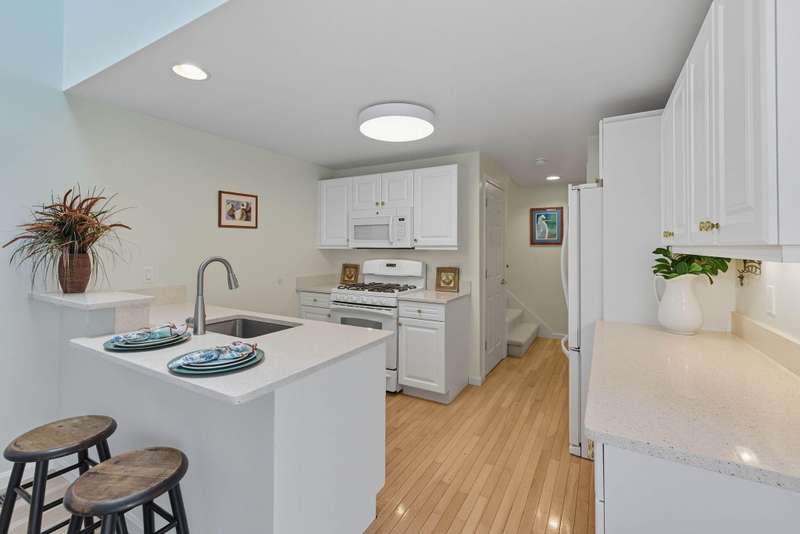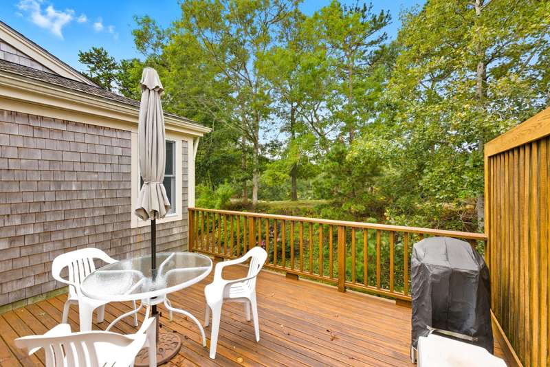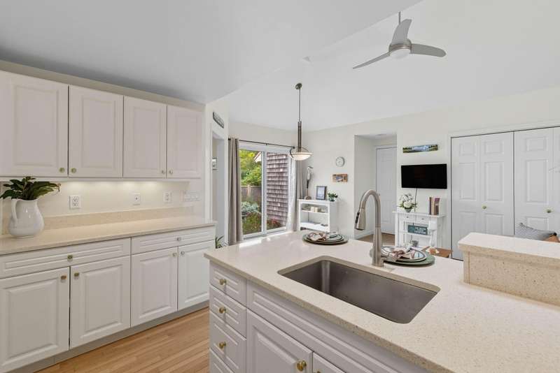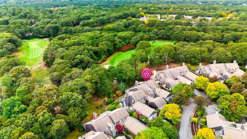 Popular D model townhome overlooking the 1st tee and fairway in Kings Way, Cape Cod's premier condo community. Move-in ready and light and bright, this home offers 1st floor living with primary bedroom ensuite with a walk-in shower, guest bath, living room with vaulted ceiling, gas fireplace and slider to deck, dining room, large eat-in kitchen/family room, laundry and direct entry 2 car garage. Second floor offers a guest bedroom, full bath, and loft for office or den. The finished lower level offers large family room, office, bonus room and full bath. There is hardwood on the first floor except for the primary bedroom and new tile in the bathrooms. Attractive courtyard and steps leading to the lower level. The entire HVAC system was replaced in the fall of 2023. Water heater was replaced in 2022. Come and enjoy the Kings Way lifestyle with many activities including a golf course, restaurant, 2 pools, tennis and pickle ball courts, meeting house, social center/post office and year-