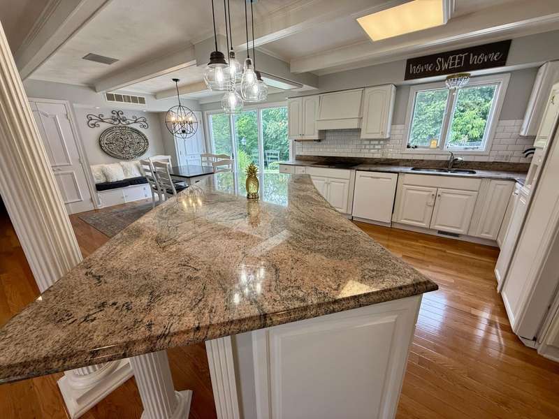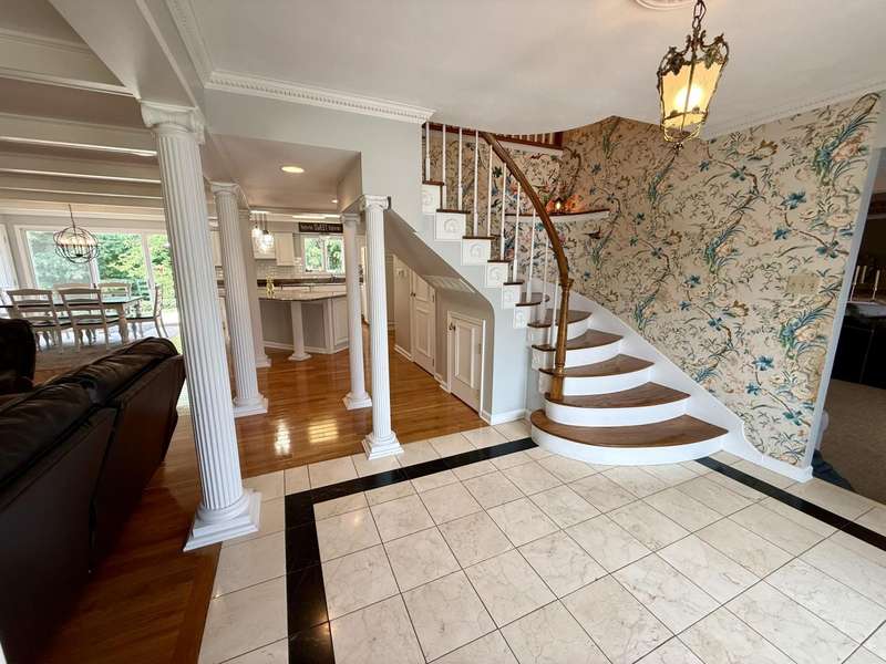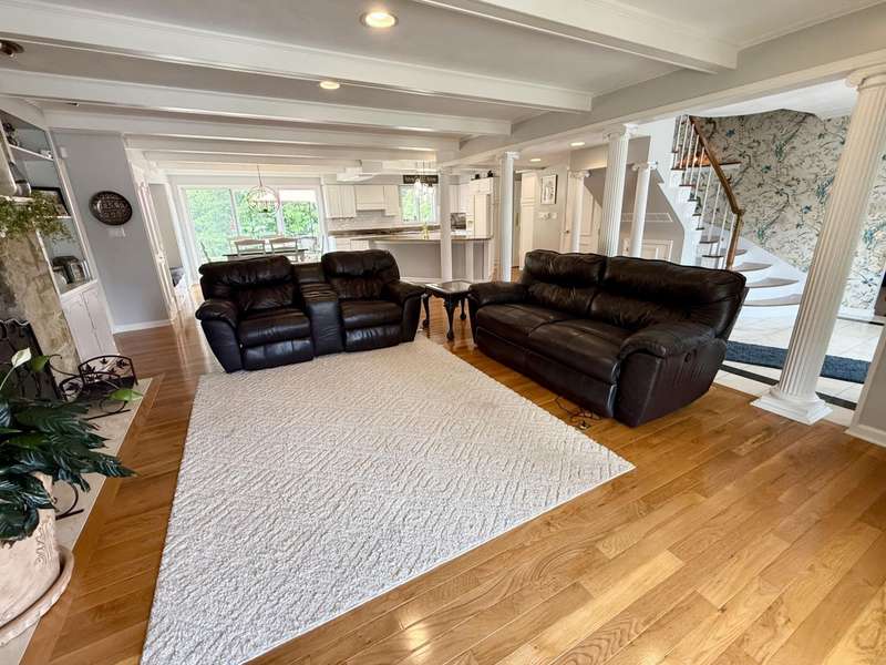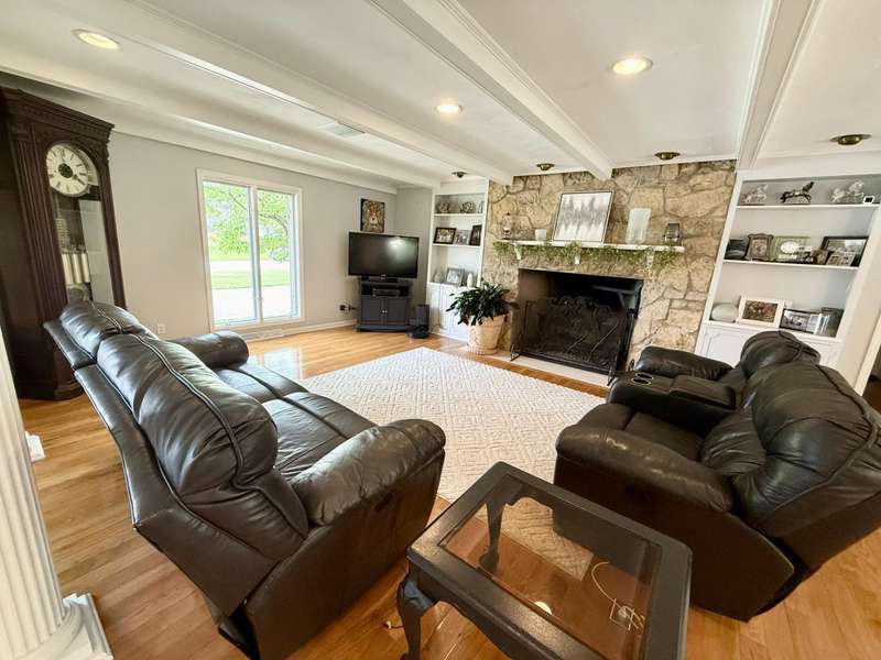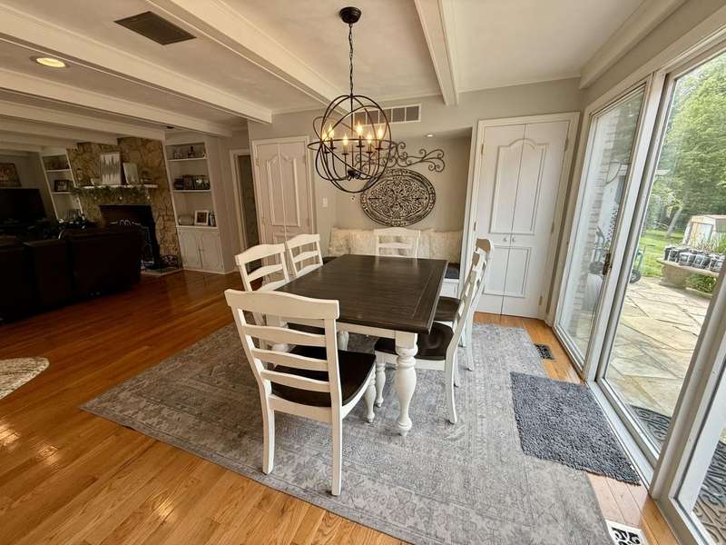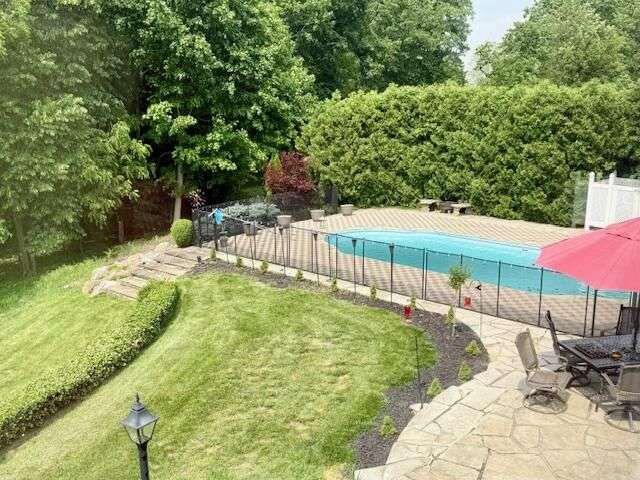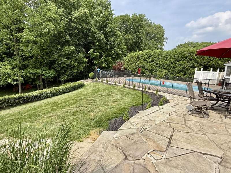 Stunning 2 story 4-5 bedrooms, 4.5 baths. Full basement with large family room, new flooring 23, remodeled half bath/laundry room plus 2 additional rooms. First floor has beautiful open kitchen with grant countertops and 5x8 island. Large pantry, Breakfast area has coffee space and bar closets. Great room has stone surround wood fireplace and built in bookshelves, wood beams. Beautiful hard wood flooring new 23, throughout kitchen, breakfast area and great room. Dining room has built in china cabinet. Living room with wood fireplace, Grand staircase and back staircase 2nd floor, offers media room with Wet bar, refrigerator. Main bedroom suite has walk in closet, full bath with walk in shower plus additional study room. 2nd bedroom has private full bath. Additional 3rd bathroom with large tub and shower. Beautiful .6 acre with rolling lot, woods, backing to creek, in ground pool with safety fence and large pool house with gas fire pit. Pool 8 ft deep. Pool pump new 23, filtration system rebuilt 24, Main drain replaced 23. 2 Natural gas forced heat new Jan 23. Condenser for central air new 21. Gutter guard and downspouts new 22 ,Tool shed roof 22. 2 car attached garage. This is a joyful home that has been loved. Pool just opened so its cleaning yet!