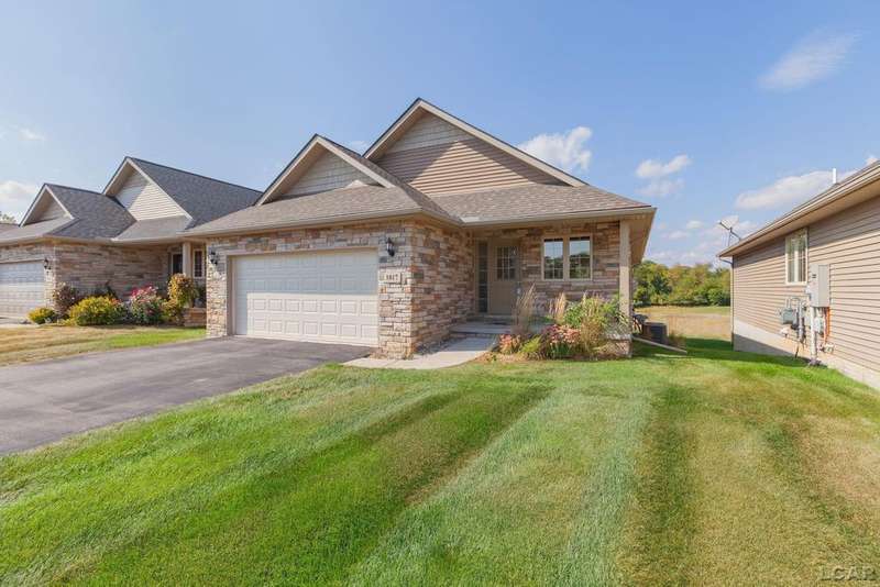 Right-size opportunity at The Ponds of Bonner Hills! Ranch style living, easy access to city conveniences and ready to move into! Built in 2016 with a thoughtful layout and tranquil views! 1,273 sf, 2 bedrooms, 2 baths, 2-car garage, full basement, whole house generator. Desirable layout with open living room with cathedral ceiling, kitchen with pantry, island, and all appliances included. Primary bedroom with primary bathroom with tile shower. Main bathroom adjacent to 2nd bedroom. Relax outside from the covered front porch or covered back balcony! Minutes to popular downtown, groceries, and easy access to Ann Arbor or Toledo areas. Low association fee, move in today!
