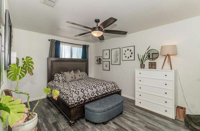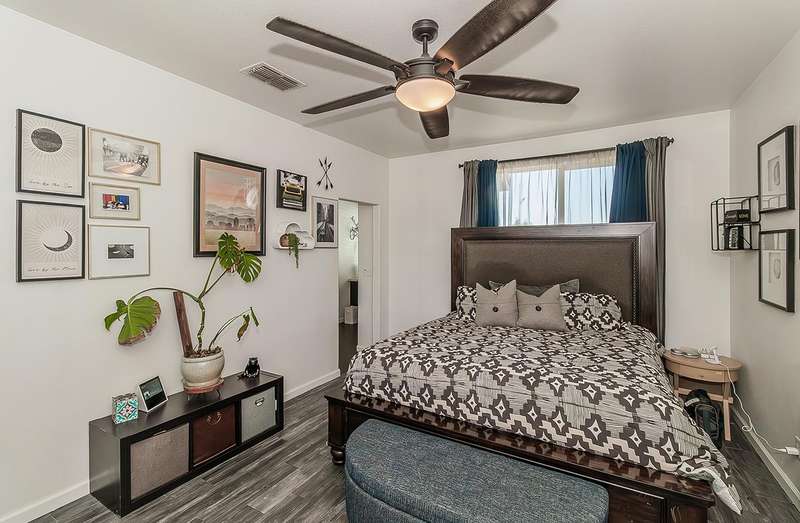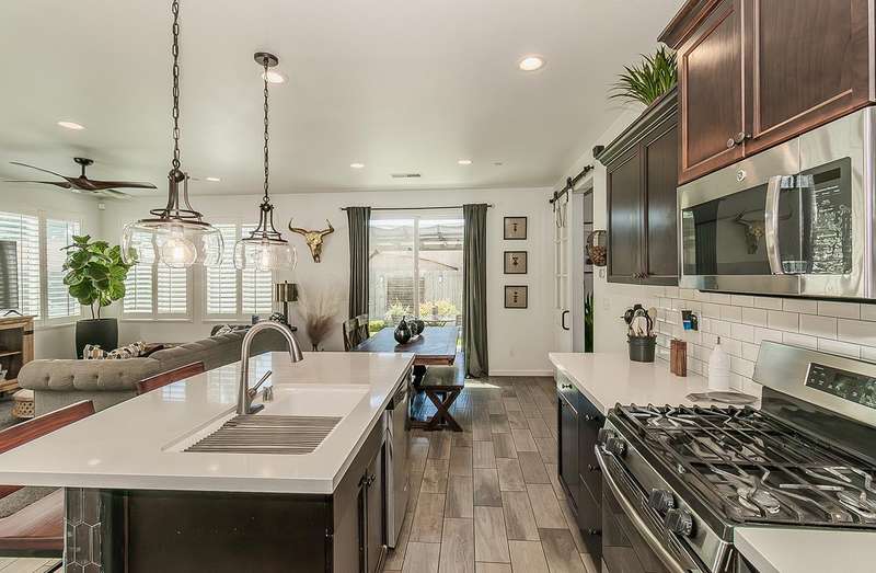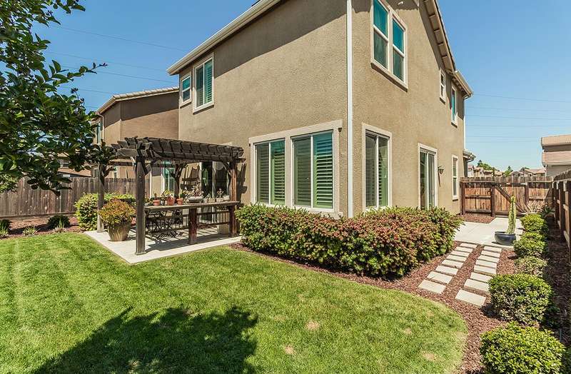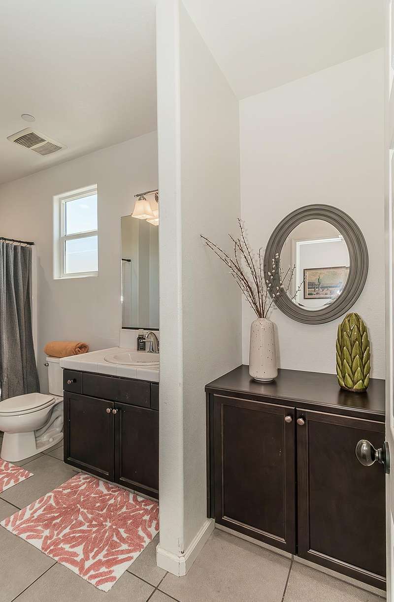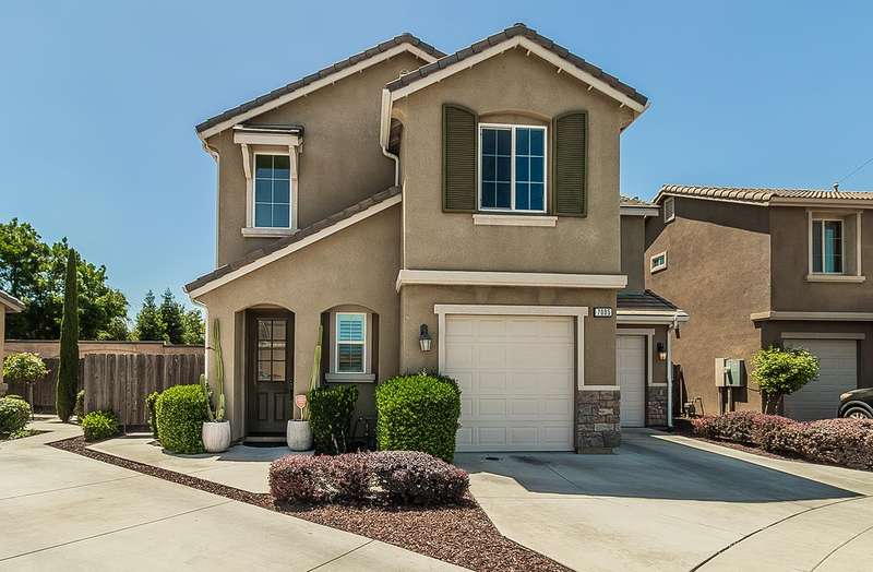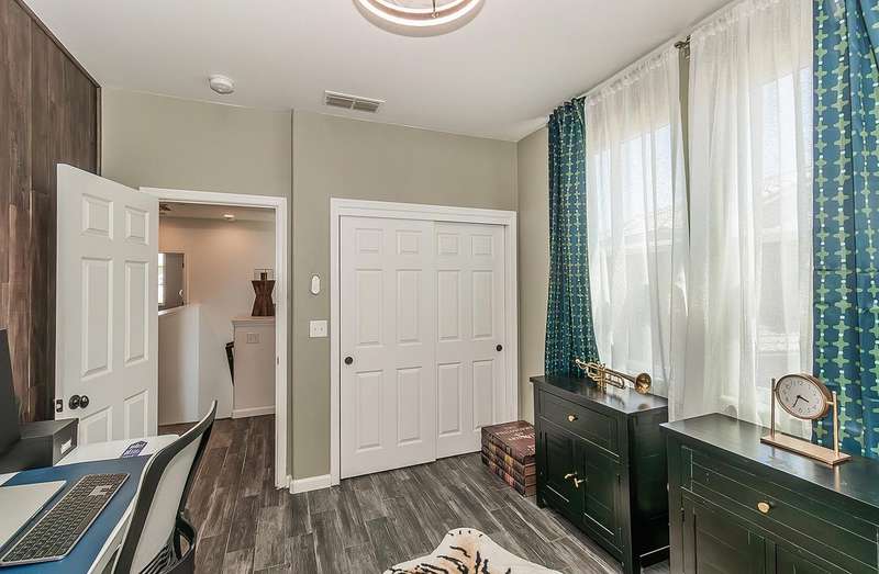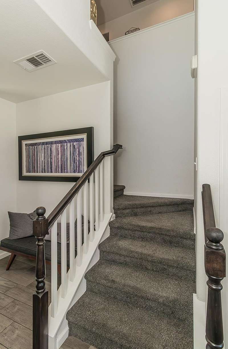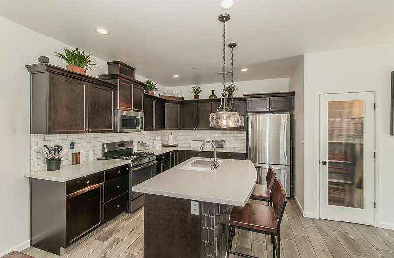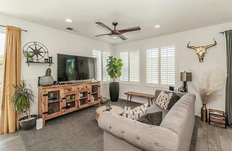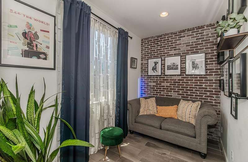 Owned Solar is only the beginning to all the features this fabulous Liberty Square McCaffrey Home Community has to offer. The outstanding floor plan features 3 bedrooms with a 4th room downstairs that could be a flex room/bedroom, office/study or whatever works for your lifestyle. The home has loads of designer decorator features including tiled floors, custom pendant light fixtures and ceiling fans, shutters, custom wall colors and real brick walls that make this home so very special. The barn-like door off the kitchen lends creativity and flexibility to your own lifestyle and needs. The kitchen has a very open feeling with quartz countertops and subway backsplash, custom cabinetry, eating bar and customized pantry door. In addition there is a nice dining room area for all your eating and entertainment needs. Upstairs are three additional bedrooms with 2 bathrooms including a spacious primary bedroom and bathroom and walk in closet. Leading to the two rear yards from the interior are two sliding doors that give you additional living space for your BBQing and relaxation. The well designed backyard is your very own spacious retreat that includes a pergola. The home has an exterior brick wall that lends itself to privacy since this is one of the few homes with no rear neighbors and is freestanding and not attached to a neighboring fence.