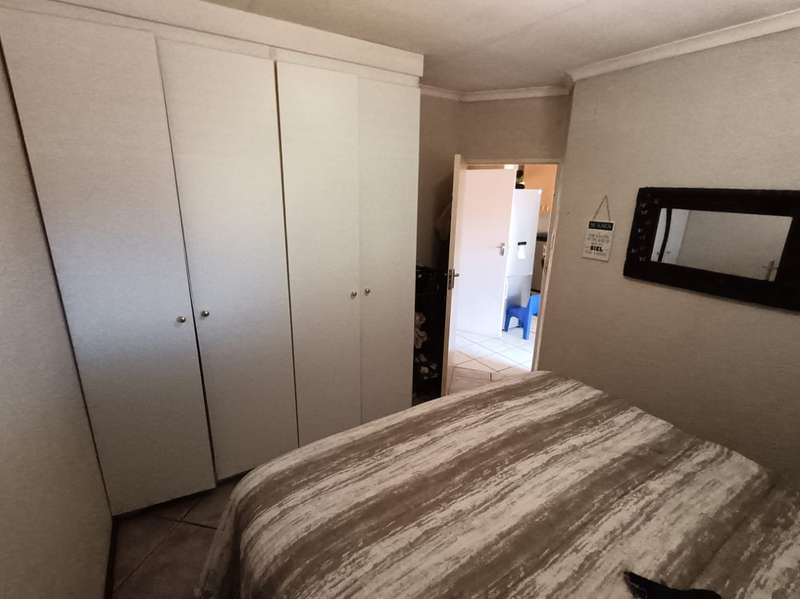 This property is separated from other houses and close to nature. The house has 2 Cozy Bedrooms, Ideal for small families, couples, or first-time buyers. There is 1 Bathroom, simple and functional for everyday comfort. There is an Open-Plan Kitchen & Lounge – Enjoy a bright, modern living space. On the outside you will find a small, easy-to-maintain Yard – Spend less time on upkeep and more time relaxing. There is also a Single Garage & Double Carport to ensure secure parking for you and your guests. There is also a Wendy House. Tucked away in the peaceful Safari Gardens, this hidden townhouse offers privacy, convenience, and a cozy atmosphere. Perfect for those looking for a low-maintenance, lock-up-and-go lifestyle! The complex is under 24/7 security, with a security control gate. Contact us today to schedule a viewing!