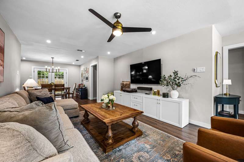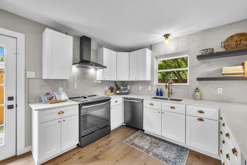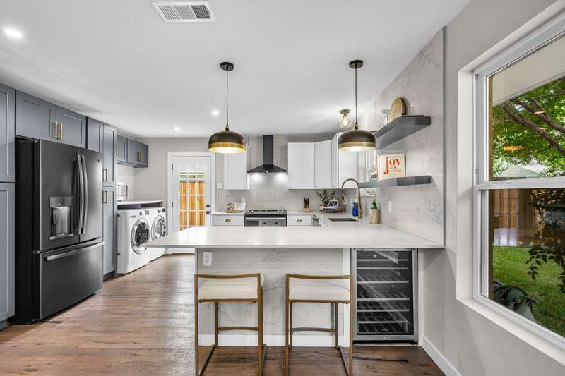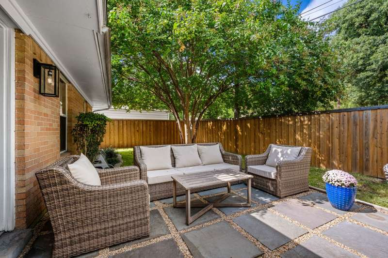 Located in the heart of Lake Highlands and zoned to award-winning Richardson ISD schools, this beautifully updated home blends modern sophistication with cozy charm. The bright, open-concept floor plan is filled with natural light and anchored by white oak hardwood floors, creating an ideal setting for entertaining. The chef-inspired kitchen showcases a white and graphite palette with quartz countertops, a large-scale polished Carrara porcelain backsplash, matte black appliances, and matte black with brushed gold faucets, fixtures, lighting, and hardware.The primary suite is a true retreat with a spacious ensuite bath featuring dual sinks, a grand shower, and a well-sized closet. The two additional bedrooms are generously proportioned with ample closet space, and one is currently being used as a home office, offering flexibility for todays lifestyle. Both bathrooms include herringbone natural slate floors, custom vanities, and Pfister faucets for a spa-like feel. Unlike many homes in the neighborhood, this one also provides ample storage throughout.Outside, a bluestone patio (2020) overlooks the large yard, creating the perfect backdrop for gatherings, relaxation, and play. Major updates include a new roof (2019), electric panel, ductwork, windows, attic insulation, HVAC, privacy fence, gutters, and solid doors (2020), water heater (2024), and fresh paint, sod, and professional landscaping (2025). With stylish finishes, thoughtful upgrades, and timeless charm, this home offers the best of L Streets living just minutes from White Rock Lake, shopping, and dining.