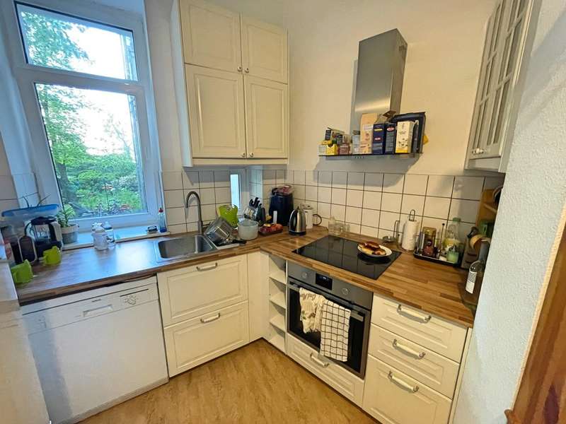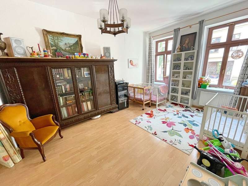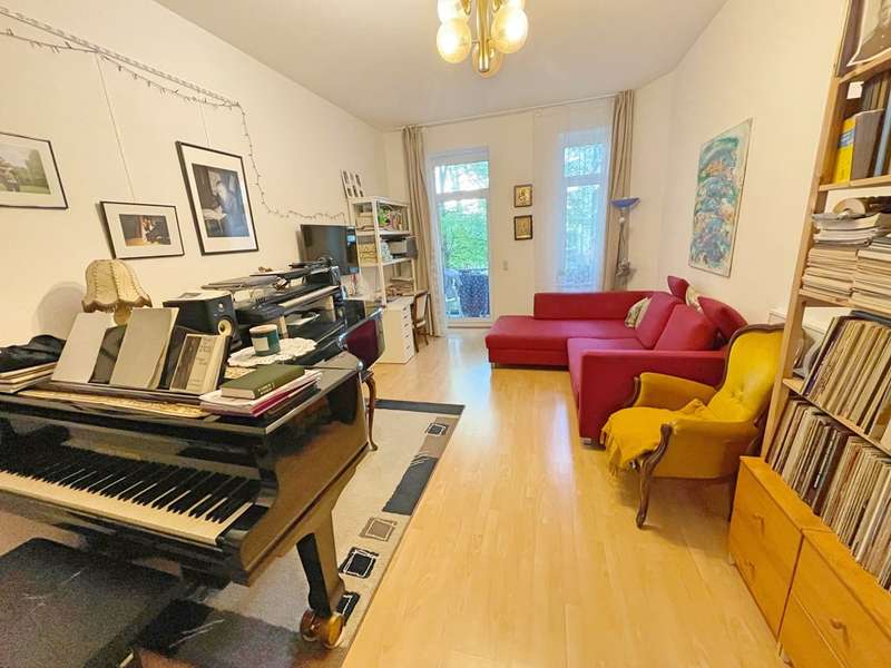 This well cut 3 room old building apartment is located in a listed apartment building, which was built around 1900 in the typical founder style. In 1998 the entire building was completely renovated. The three rooms are divided on a living area of about 86m² and offer enough space and comfort. The separate kitchen with adjoining living and dining area forms the center of the apartment. From here you have direct access to the courtyard-side balcony, which invites you to relax in the sun. In the living room, bedroom and children's room as well as in the hallway easy-care laminate flooring was laid. The interior bathroom with bathtub and shower also offers enough space for a washing machine. In addition to the bathroom, the separate toilet is also laid with tile flooring. Currently the apartment is rented. The monthly house money amounts to 293,00€ per month. Gladly we are available for a personal consultation.