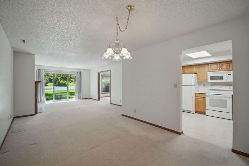 Have you started to worry about the winter yet? No snow worries here because you have a heated underground garage with 2 parking spaces #8 and #9. This is carefree living with no upkeep. Freshly painted and clean main level large unit with spacious living and dining area, 2 bedrooms, 2 full baths and large den/office. The LR electric fireplace has a nice insert and new oversized patio door leads directly to the concrete patio. The kitchen has a tray ceiling and there are extra cabinets. The HOA dues include outside maintenance, roof, building insurance, mowing and snow removal plus the water and sewer charge for each unit. You pay for your electricity use and pay condo insurance for your unit.