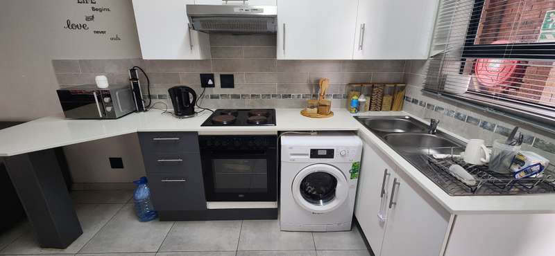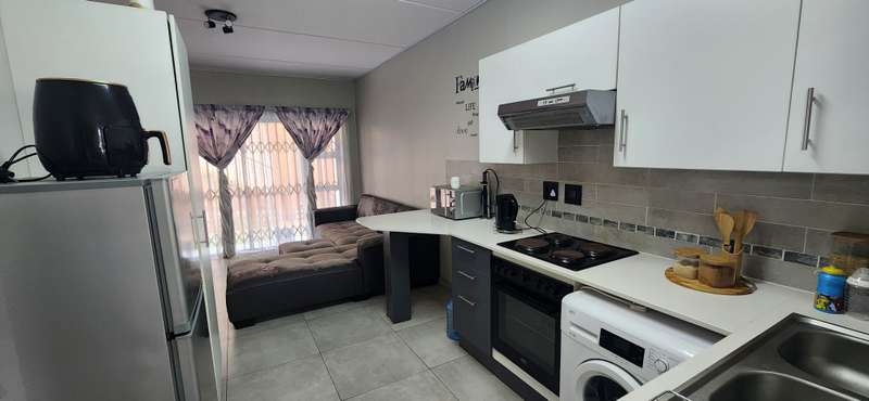 This well-maintained ground floor apartment offers a perfect balance of comfort and convenience in a sought-after security complex. Features: 2 spacious bedrooms 1 full bathroom Modern open-plan kitchen Reception area leading out to a private garden – ideal for relaxing or entertaining 1 covered parking plus visitors parking Pre-paid electricity for easy management Security & Lifestyle: 24-hour security with access control Electric fencing for added peace of mind Clubhouse with braai facilities Sparkling communal swimming pool Perfect for first-time buyers, young professionals, or investors looking for secure living with lifestyle amenities. Viewings for pre-qualified clients will be arranged by appointment. Contact me to assist with your pre-approval.