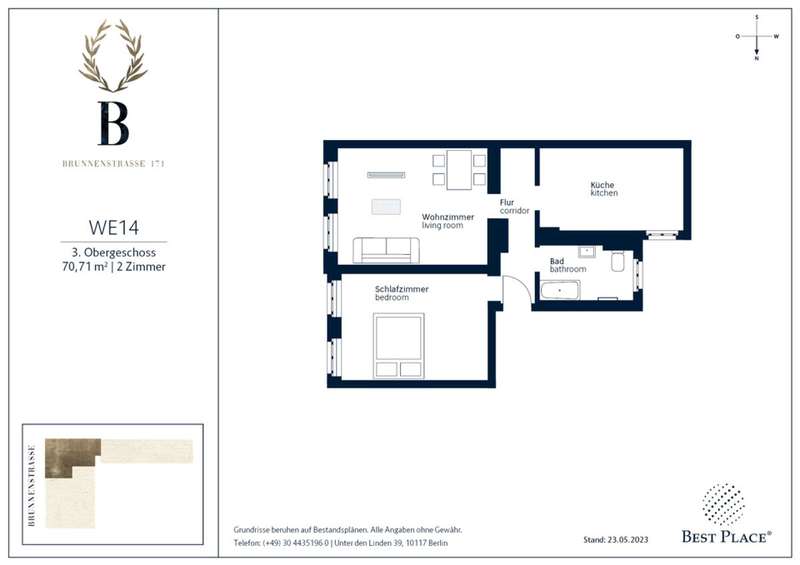 The Wilhelminian style house "Brunnenstraße 171" was built in 1900 and radiates the timeless elegance of the Wilhelminian era with its classic Berlin façade. The ensemble consisting of a front house, side wing and a coach house, this magnificent building offers a total of 20 flats and two commercial units. The flats are partly rented, are accessed via a charming staircase and have 2 to 4 rooms with a living space of 36 to 113 sqm. Balconies and terraces on the courtyard side, including a roof terrace on the upper floor, ensure cosy hours outdoors. The lovingly maintained inner courtyard with bicycle parking spaces not only invites you to relax, but also offers additional respite from the hustle and bustle of everyday life. If you want to invest in the heart of Berlin's Mitte, this is the place for you.