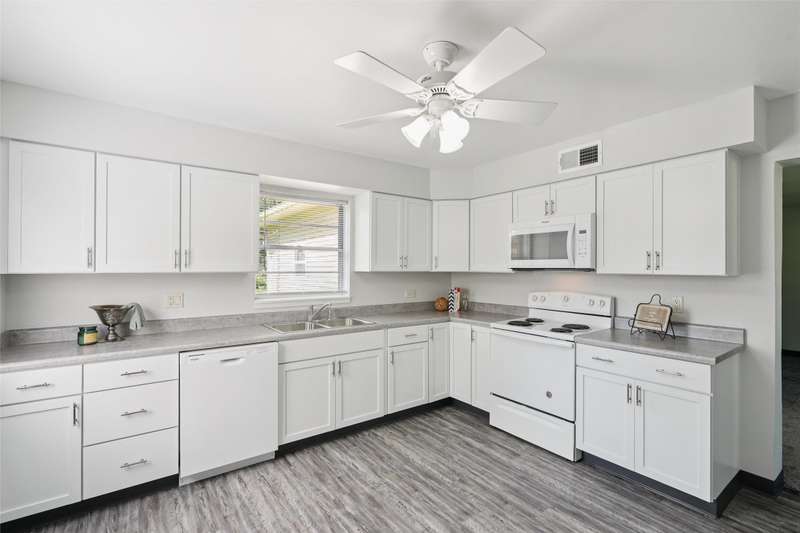 Solid, stylish, and move-in ready! This updated brick ranch with concrete construction offers space, comfort, and peace of mind in South Des Moines! With 1,662 sq ft of living space, youll find 3 generously sized bedrooms plus a 4th thats large enough to serve as a second living area, office, or flexible bonus room. The combination of brick exterior and concrete construction means exceptional durability, energy efficiency, and reduced outside noise; making this home as practical as it is inviting. Every inch has been refreshed, including new paint, carpet, blinds, storm doors, and a fully renovated kitchen with updated cabinets, countertops, LVP flooring, dishwasher, and microwave. Stay comfortable with new central AC, enjoy peace of mind with a roof replaced in 2020, and take advantage of the large lot featuring a covered front patio, spacious back patio, and a backyard thats almost completely fenced in. Located in the Neighborhood Finance Corporation (NFC) lending area, eligible buyers may qualify for up to $10,000 in grant moneyadding even more value to this already incredible home.