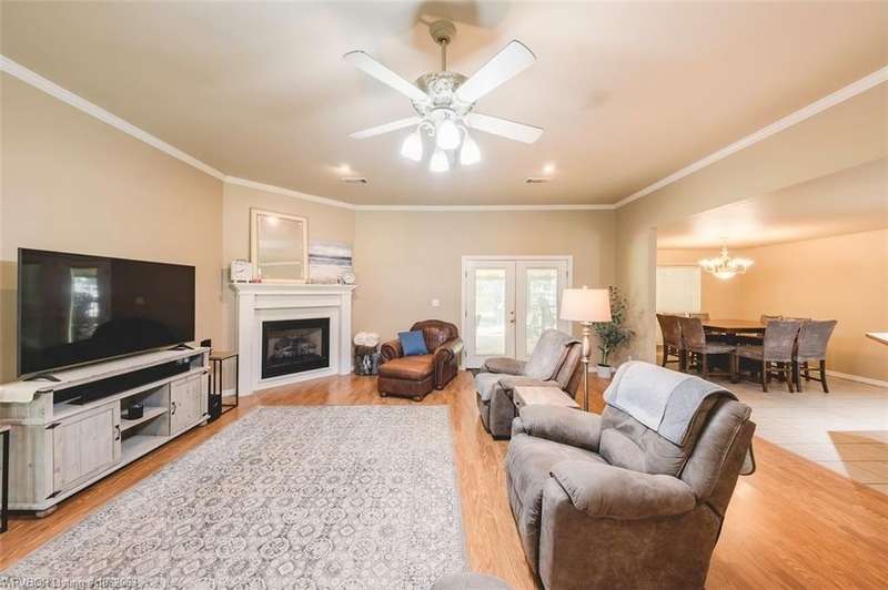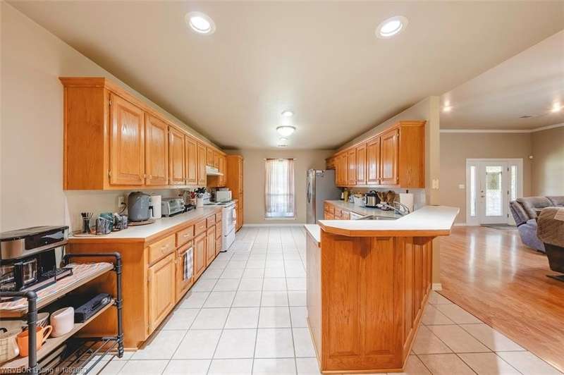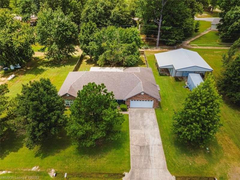Welcome to your dream home! This charming 3-bedroom, 2-bath brick house offers a perfect blend of comfort and functionality. Boasting an open-concept design, the spacious living area features a cozy fireplace that invites relaxation. The ceramic tile flooring adds a touch of elegance throughout and makes clean up a breeze! This home also features a desirable split floor plan, ensuring personal space for everyone. A covered porch enhances the curb appeal and provides a lovely spot to unwind. Enjoy privacy in your backyard oasis, complete with a privacy fence, mature shade trees, and a deck perfect for entertaining. The property includes a large metal shop building with a pull-up door, insulation, and a concrete floor, ideal for projects or storage. Located in a nice neighborhood just outside of town, this house is ready to be your new home sweet home! Don’t miss out on this incredible opportunity!