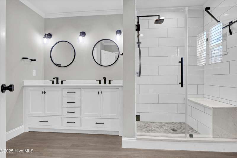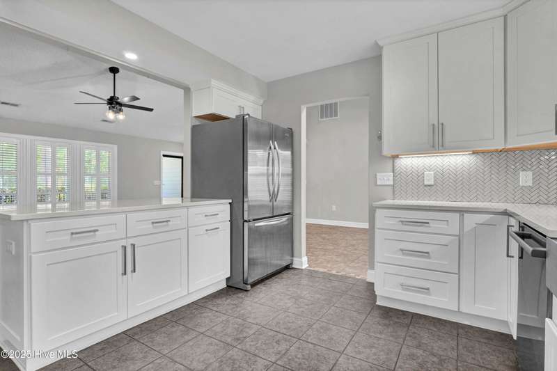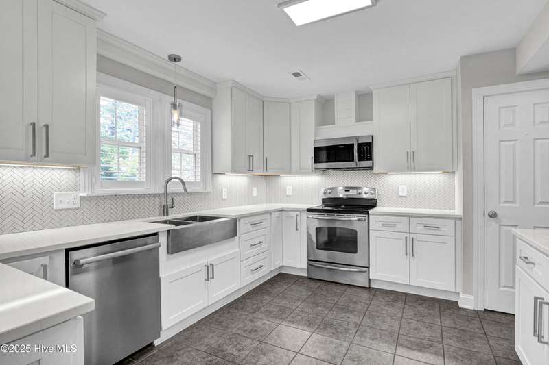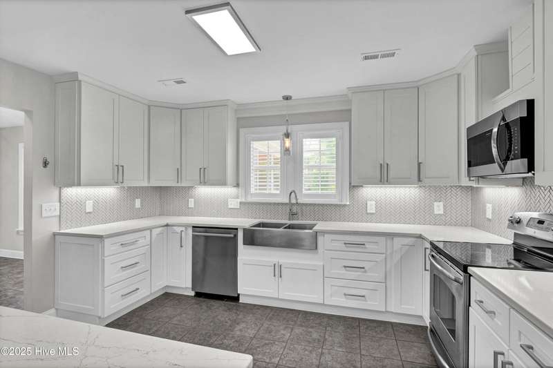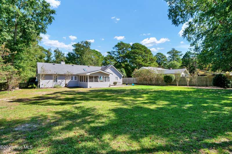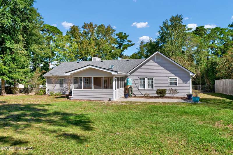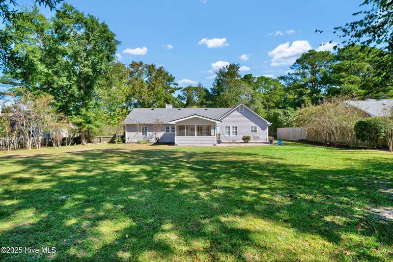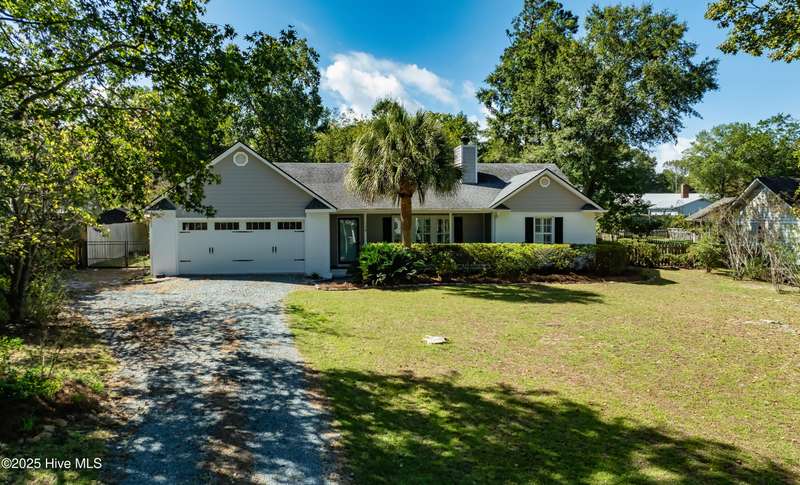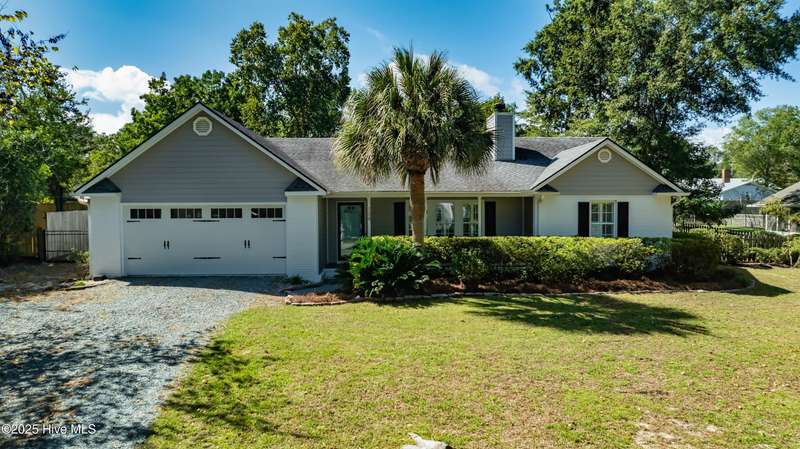 Nestled on a generous half-acre lot, this inviting North Hills home combines modern updates with timeless charm. Featuring a split floor plan, the primary suite offers a luxuriously updated bathroom with modern finishes. The fully renovated kitchen showcases quartz countertops, custom cabinetry, tile backsplash, and under-cabinet lighting. The inviting living area is centered around a cozy wood-burning fireplace, perfect for relaxing evenings. Enjoy the freedom of no HOA and ample outdoor space for entertaining, gardening, or simply enjoying the coastal breeze. Conveniently located off Middle Sound Loop Road, just minutes from Pages Creek Reserve, Ogden Park, Porters Neck, Mayfaire, and Wrightsville Beach--you'll love the combination of tranquility and accessibility this home provides!