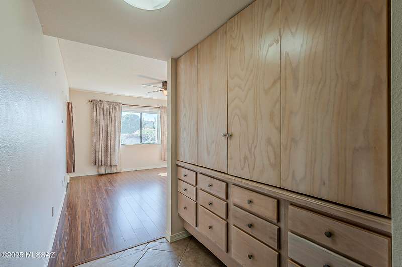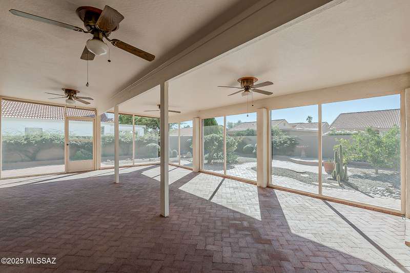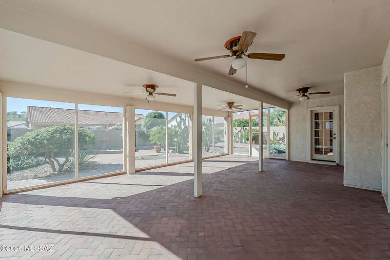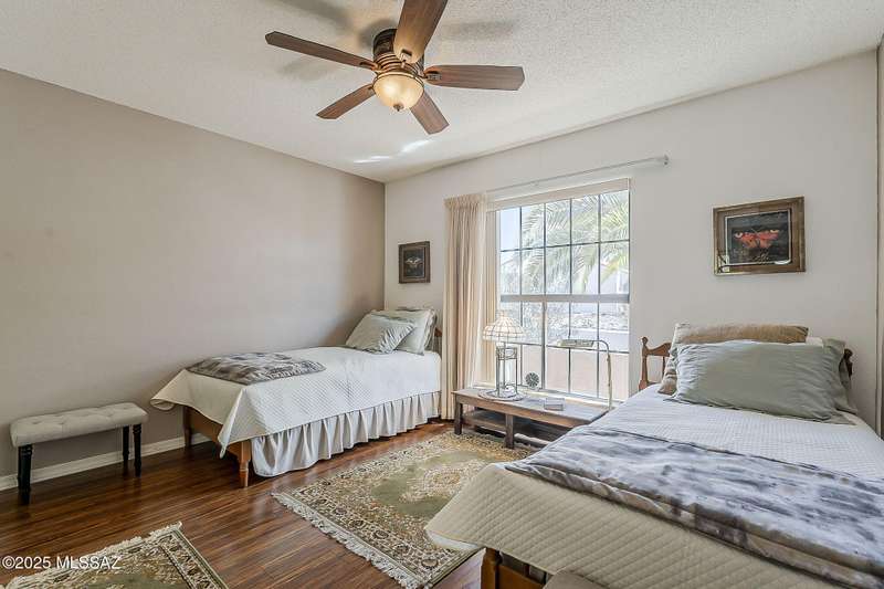 SaddleBrooke One SHAWNEE model, beautifully maintained home. New irrigation (2020) with WiFi-enabled Hydrawise timer (2024) for remote control . Inside, comfort and convenience with a smart Ecobee thermostat (2020) and a SimpliSafe security system (2021) -- both accessible remotely. No carpet - wood laminate & luxury vinyl. Guest room has ensuite bath. Exterior painted (2021). Backyard w/beautiful paddle cacti and private outdoor retreat in over-sized Arizona room. Cozy fireplace w/new gas log set (2024). Extended garage w/extra storage. This home combines modern technology, thoughtful landscaping, and classic charm -- unpack and enjoy!