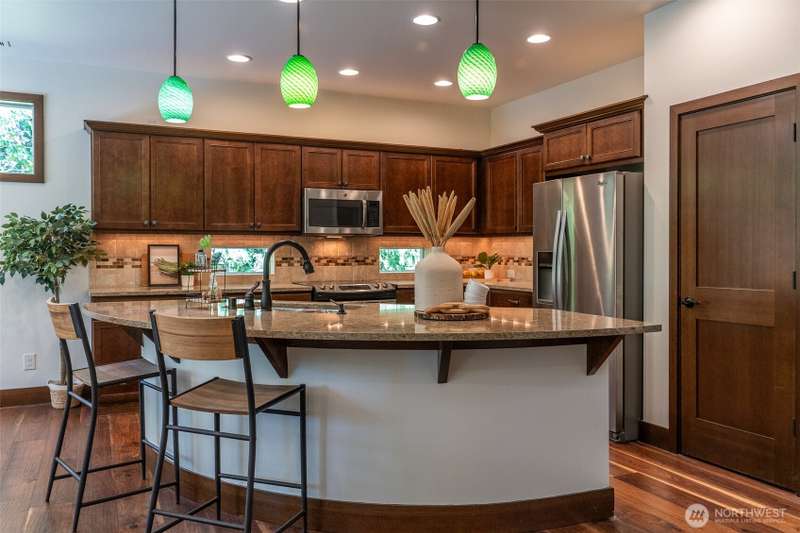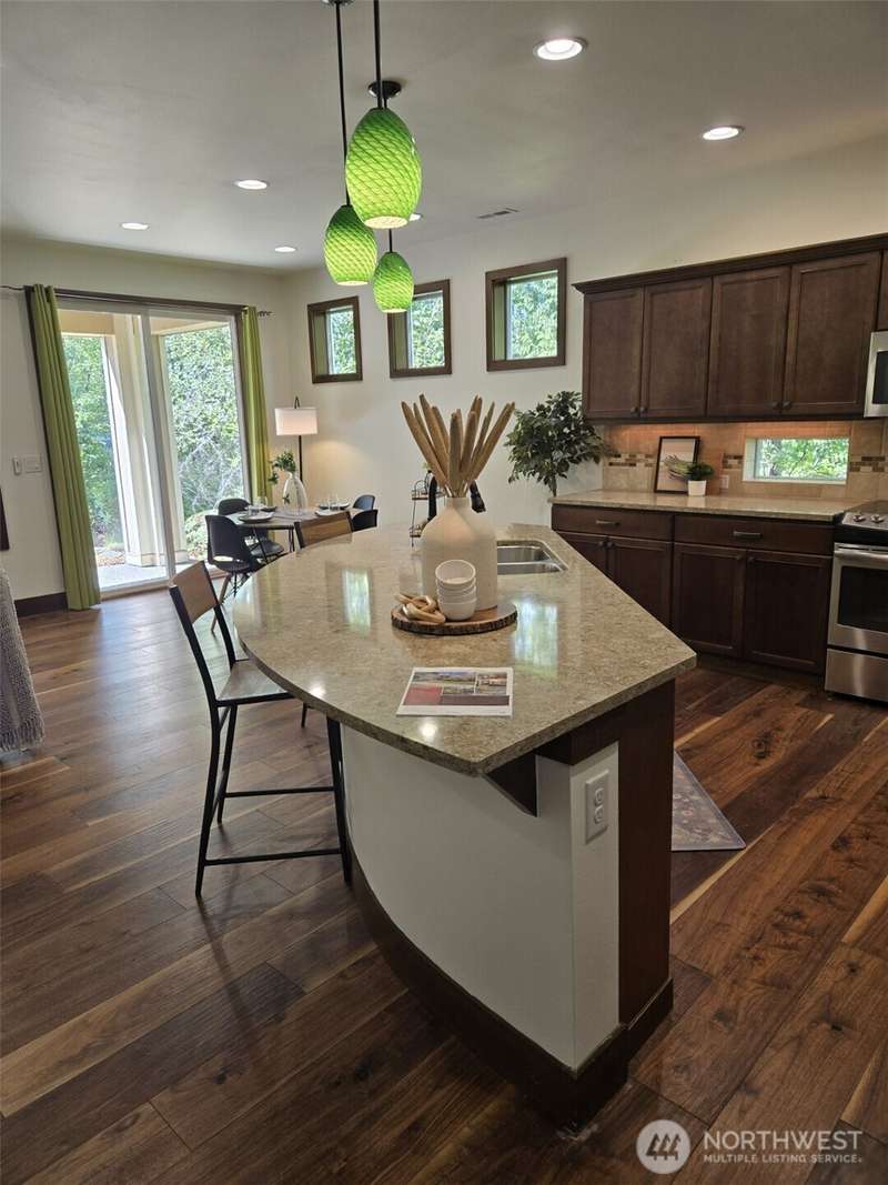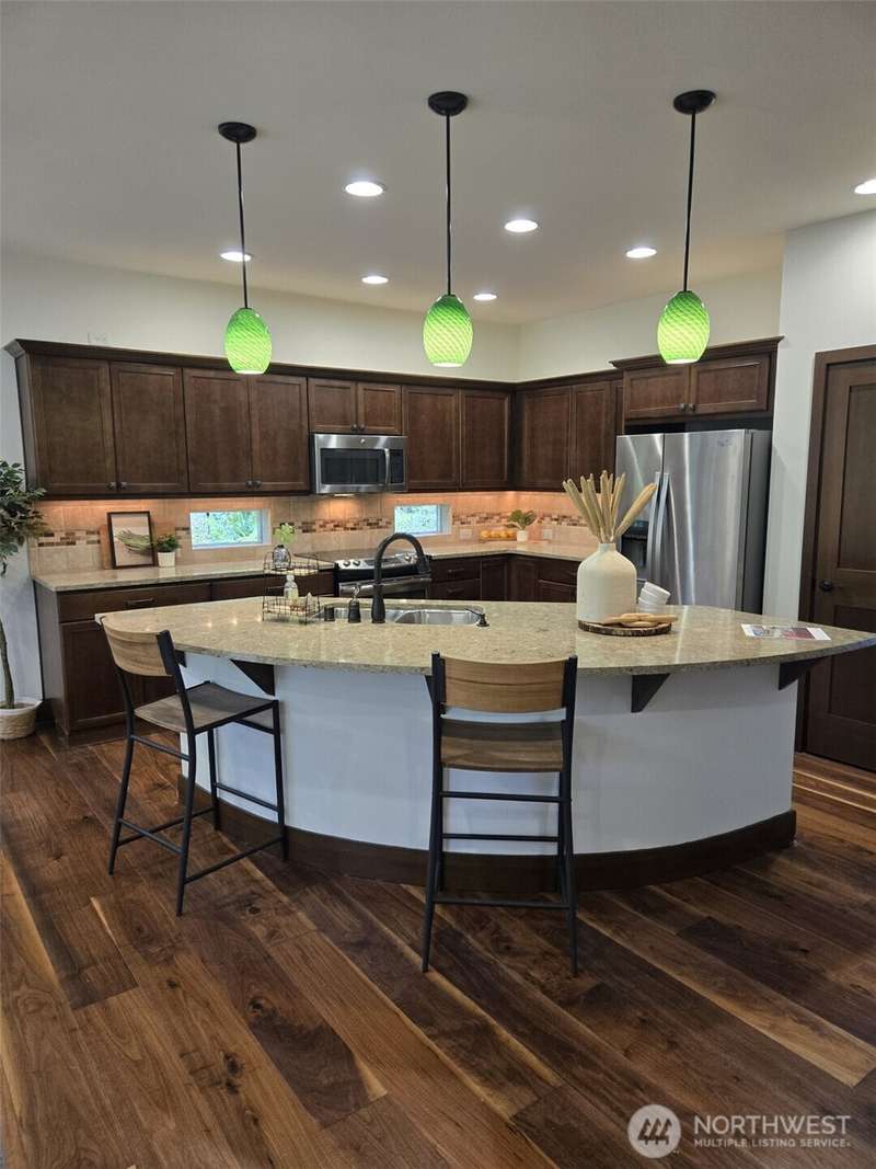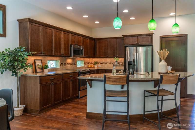 $9,500. savings on the Lodge Initiation Fee Here! Fresh price, fresh interior paint! This stunning Founders Home in Trilogy at Tehaleh 55+ backs to a greenbelt on a corner lot, just steps from the clubhouse with resort-style amenities—indoor pool, fitness center, pickleball, dining, trails & more. Enjoy solid walnut floors, quartz counters, tile baths, upgraded cabinets, extended patio, dual sprinkler systems, invisible fence, garden space, custom blinds, stone fireplace & designer lighting. Eat-in kitchen, great room, built-in desk, large laundry, upgraded doors/hardware & gated courtyard with stone columns. Estate owned, sold As-Is.