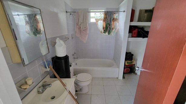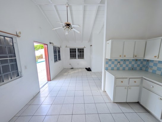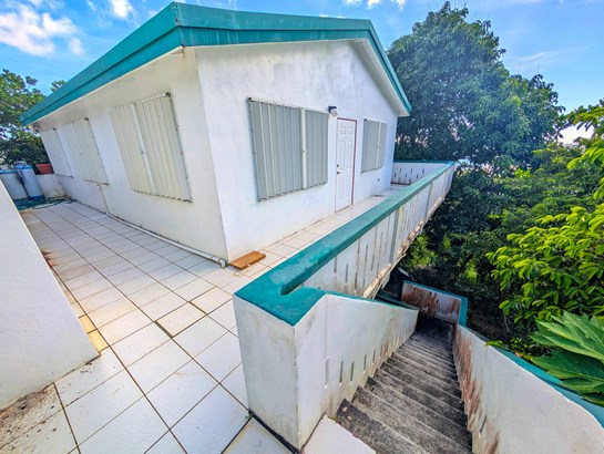 Cute starter home with nice views of Charlotte Amalie harbor. 3 bed 1 bath house with concrete steps to lower level with laundry and another full bathroom and a large covered porch. Perfect to add a studio apartment. Several fruit trees on property. Metal roof, concrete construction and accordion shutters all around. Bedrooms are small, but house is really well built.