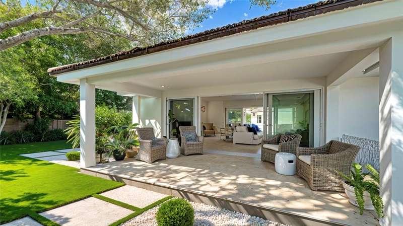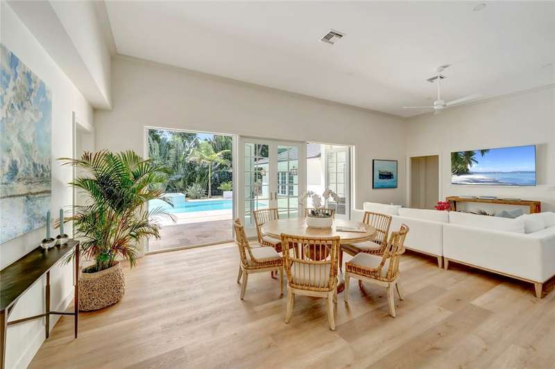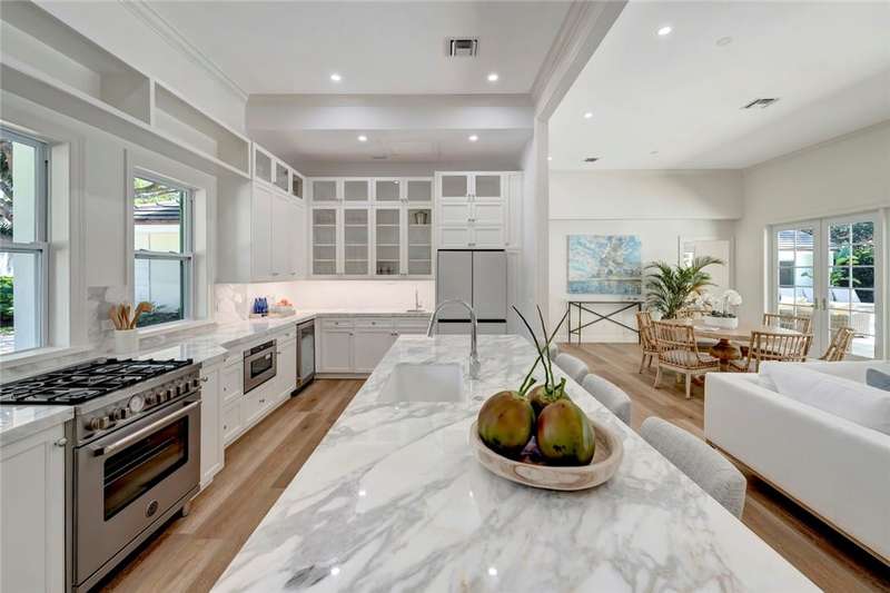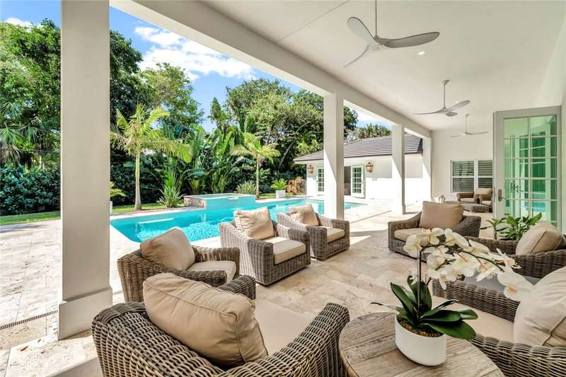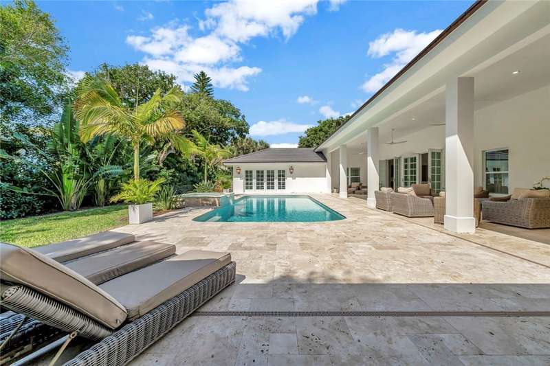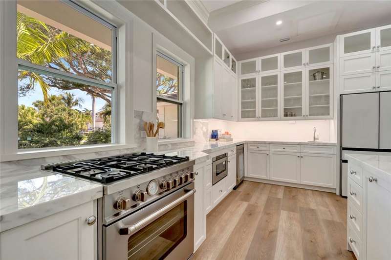Effective yr built 2023. Home is situated on a 1/2 acre just 2 homes from the ocean! A spacious open layout, enlarged kitchen w/Calcutta Marble countertops & top of the line appliances. Primary bedroom overlooks the pool w/two large walk-in closets. New summer kitchen on large covered lanai. Entertainment rm just off the pool w/fireplace, newly installed sliders, A/C & covered lanai. Enjoy southern exposure poolside surrounded by lush tropical landscaping. Impact glass, Tankless gas water heater, A/C 2 car garage plus extra room for golf cart, well for sprinkler. Sizes approx./subj. to error.