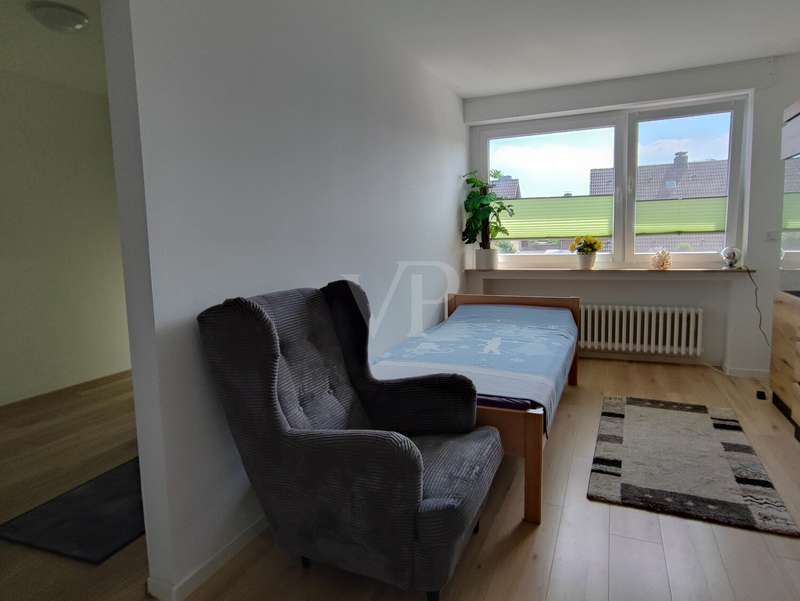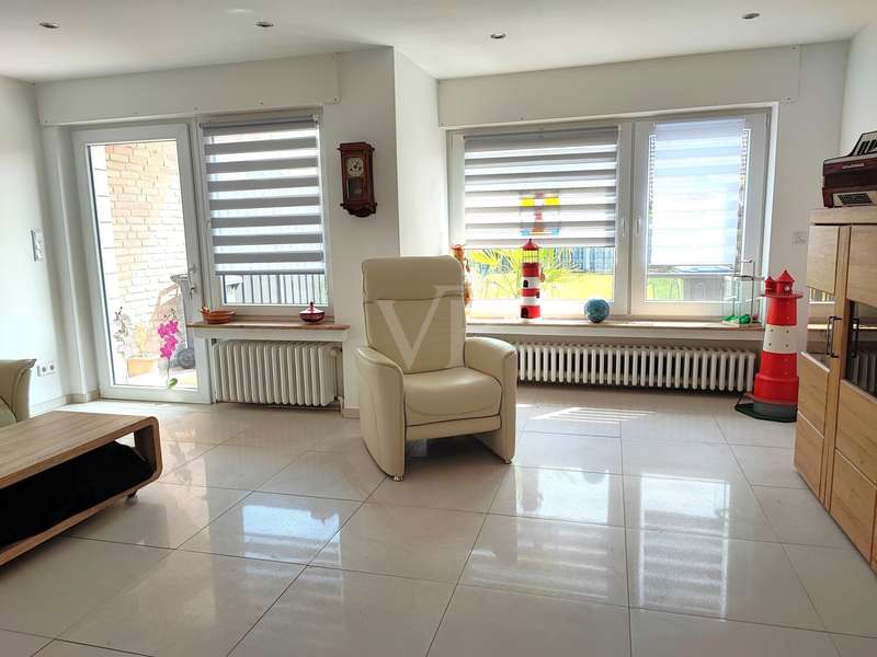 This lovingly modernized mid-terrace house from 1969 combines timeless charm with fresh, contemporary living comfort. With around 136 m² of living space and a plot of almost 300 m², it offers plenty of room for your dream home - and a real feeling of security. The bright, friendly entrance area welcomes you in. There is plenty of space for a checkroom here. From there, you can go directly to the guest WC, the cozy kitchen with space for a dining table and the spacious, light-flooded living room. Large windows offer a view of the easy-care garden - a place to relax and enjoy. Thanks to direct access to an adjoining path, gardening work and transportation can be carried out easily. Two well-designed bedrooms await you on the upper floor. The larger one boasts a walk-in closet and balcony - ideal for sunny mornings. As originally planned, this could also be converted into two children's bedrooms. The bright daylight bathroom with shower rounds off this floor. Two further rooms are available in the converted attic, perfect as a home office, hobby area or guest room. The full basement offers additional storage space and plenty of room for your ideas. The property was extensively renovated between 2021 and 2024 - including a new heating system, modern insulation and high-quality windows - for a pleasant indoor climate and a good energy standard. Practical: an outdoor parking space directly in front of the door and a garage in the nearby garage yard are also included. The quiet, family-friendly location with good connections, short distances to schools, shopping facilities and leisure activities makes this house a place where everyday life is easy and you enjoy being at home. In short: a house with heart, space for all your plans - and the perfect blend of comfort, functionality and warmth.