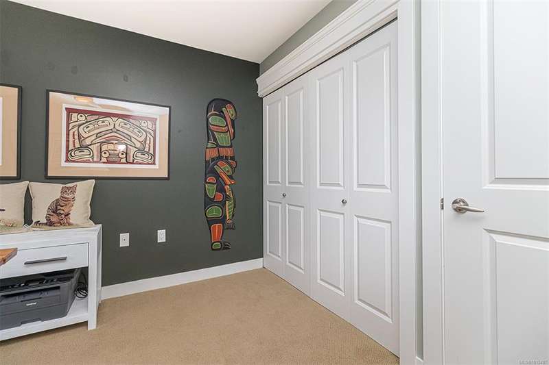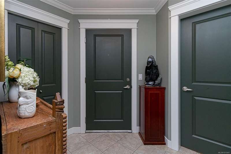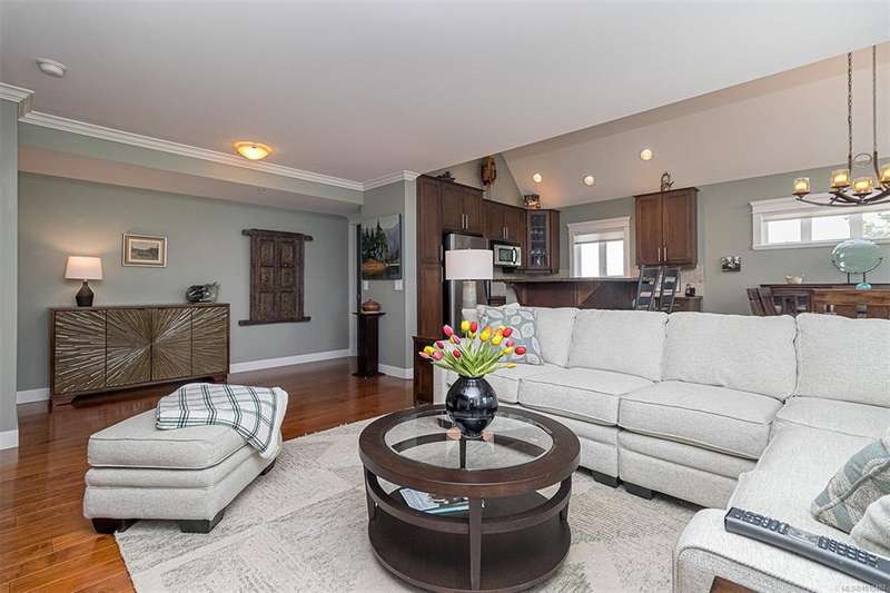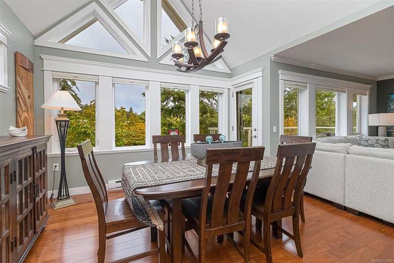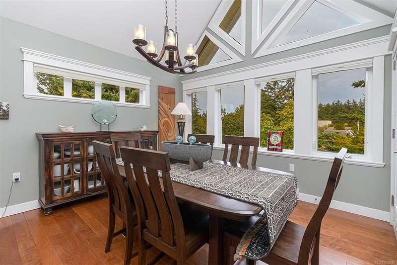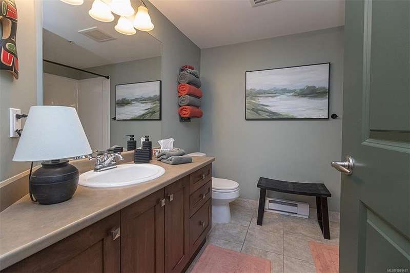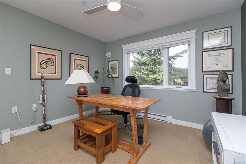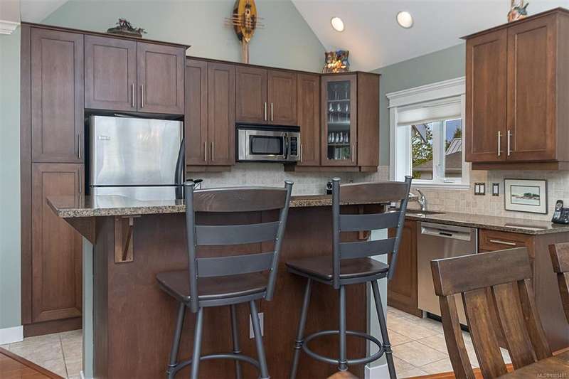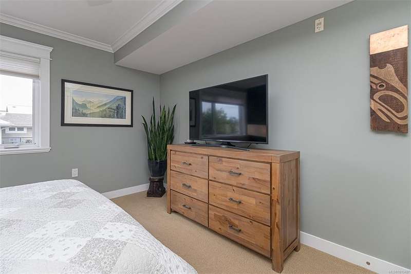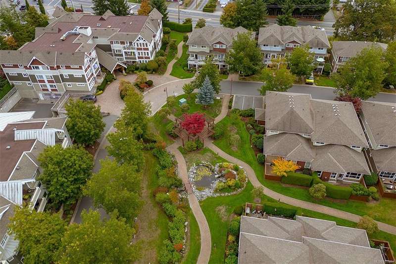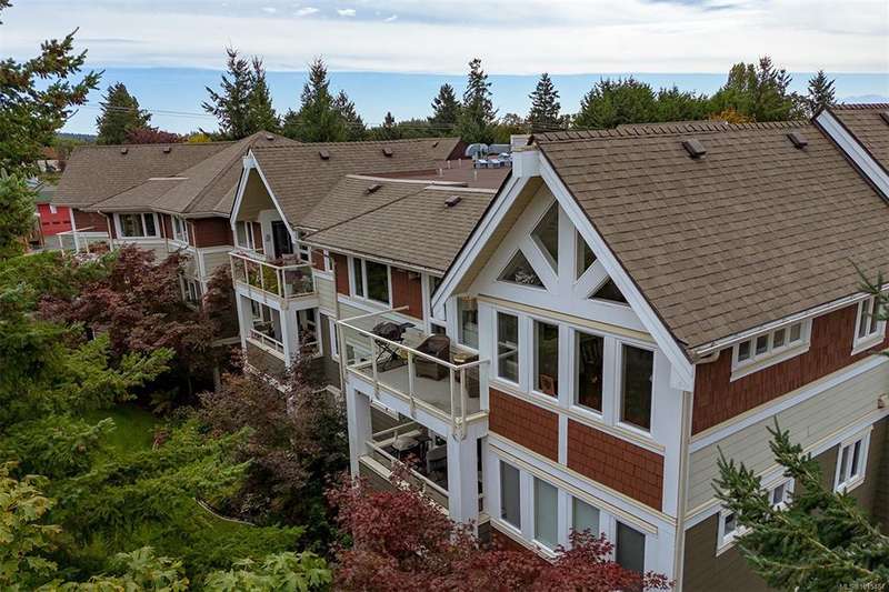 Welcome to your top-floor corner home with vaulted ceilings & floor-to-ceiling windows that flood your space w/natural light. Freshly painted throughout w/sleek new blinds, this place is move-in ready...literally nothing to do but unpack & relax. The smart, open-concept layout features hardwood floors & a spacious entry that flows effortlessly into two well-sized bedrooms. The living room is the perfect space to host your crew or just kick back & cozy up in comfort. The kitchen is ready for your inner chef w/granite countertops, stainless steel appliances, & a handy breakfast bar—perfect for morning coffee and easy flow to the large dining area, which has plenty of room for your full-size table & buffet or bar setup. The primary bedroom is a true retreat, with great closets & a spacious ensuite. The second bedroom is cross unit - perfect for privacy, guests, or home office. Set among beautifully landscaped grounds, an easy walk to Broadmead/Royal Oak shopping & to Commonwealth rec!
