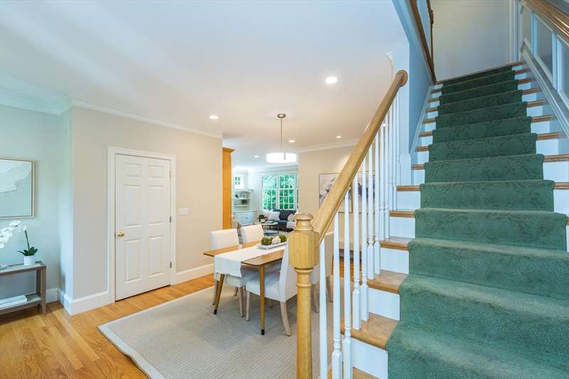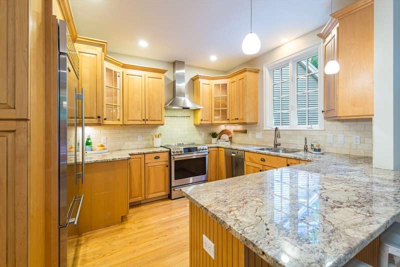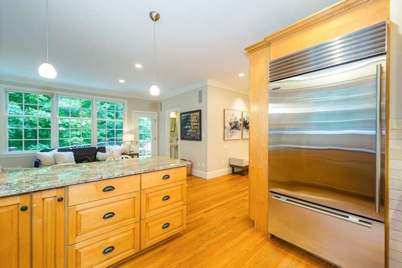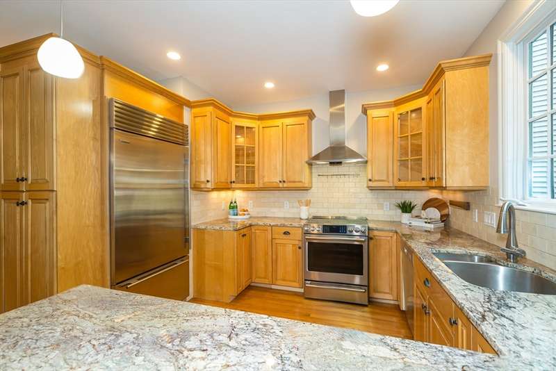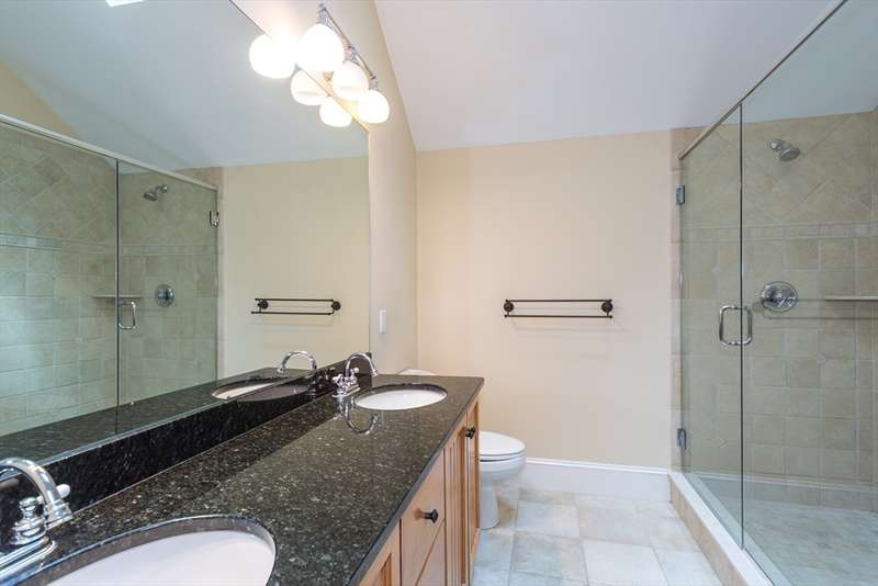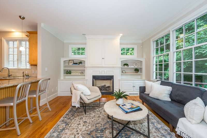Fabulous, Spacious Condo located in Super Downtown Needham Location! Great floor plan with Master Suite on both the 1st and 2nd floor. All 3 bedrooms are en-suite. Lovely Living room with custom builtins, gas fireplace and access to a private deck and patio overlooking conservation land. Spacious kitchen with custom cabinetry, stainless steel appliances, granite counters and breakfast bar.leads to the Formal Dining Room. 1st floor Master Bedroom Suite has spa like bath and a walk in closet. The 2nd floor greets you with a cozy library with gas fireplace, built in bookcases and tons of natural light. 2nd floor Master Suite with fabulous walk in closet and private bath with cathedral ceiling and sky light. 3rd bedroom also has its own private bath, Laundry room with 1/2 bath on 1st floor. The lower level is nicely finished with a gas fireplace and built ins perfect for family game nights and entertaining. Walk to all location! Shops, T, restaurants. Easy to show! HURRY!!