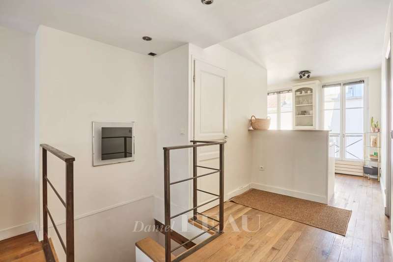 This sunny duplex apartment is on the 4th floor of a luxurious period building located between Place François 1er and avenue Montaigne in the heart of the capital’s prestigious Golden Triangle. Benefiting from an excellent floor plan with no wasted space, it includes a spacious living/reception room, an open-plan kitchen, a bedroom, and a shower room with a wc. Upstairs are a suite with a bathroom/wc and dressing room.
