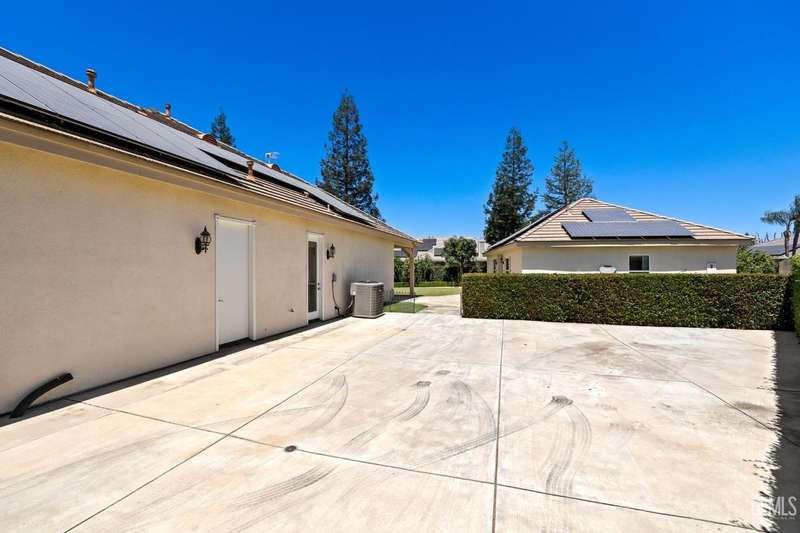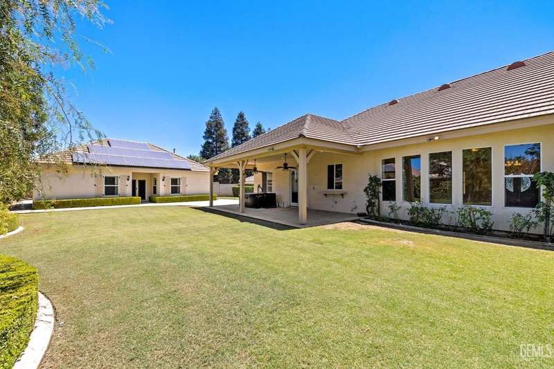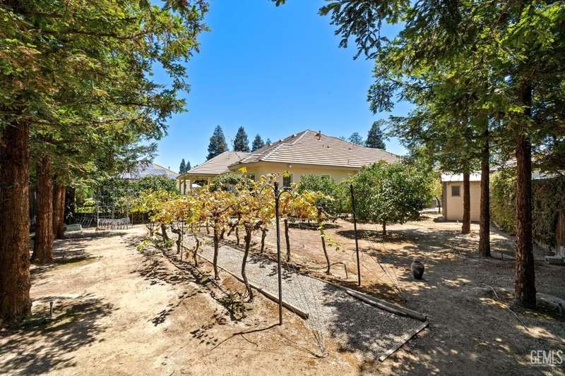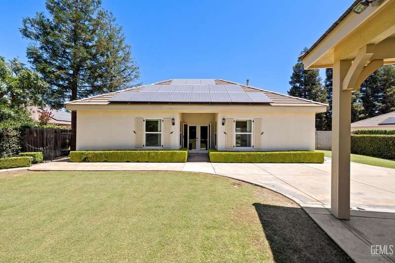 Welcome to this beautiful home in the sought-after Southern Oak gated community! Nestled at the end of a peaceful cul-de-sac on an expansive 18,730 sq. ft. lot, this unique property offers two homes on one lot, perfect for multigenerational family living. Main home measures approx. 3163 sq. ft. and built by Dave Packer Const. and features 4 bedrooms 3 baths in a desirable split-wing, open-concept layout. Step inside an inviting entry with elegant pillars and high vaulted lighted ceilings that create a sense of spaciousness while allowing natural light to flood the home while boasting plantation shutters throughout, a combination of tile flooring and carpet,beautiful granite kitchen counters with an abundance of cabinets and a spacious island and stainless steel appliances.The back guest home measures approx. 1101 sq. ft. 2-bedroom 1-bath and wheel chair accessibilty and its own private yard. Fruit trees line the west side of the main home. Plenty of RV parking. SOLAR WILL BE PAID OFF!
