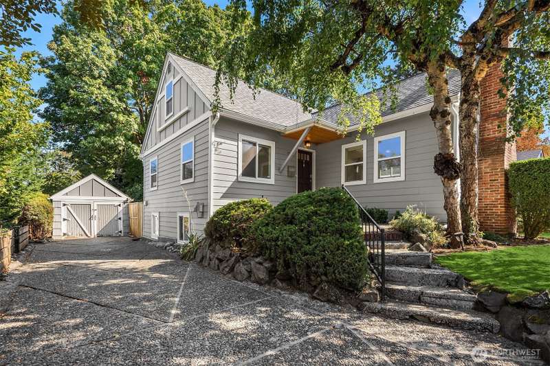 Filled with natural light and perfectly situated, this home offers an outstanding location just blocks from Green Lake, schools, shops, restaurants, and the Northgate Light Rail station. Set on a sun-filled corner lot, the home has been thoughtfully updated with siding, energy-efficient windows & more. Inside, the charm shines through with wide-plank oak floors & a classic fireplace. The main level includes two bedrooms and a full bath, with an updated kitchen. Upstairs offers a large bedroom & a newly added bathroom. The lower level of the home offers flexible space for an office or additional bedroom. The private backyard is ideal for barbecues and entertaining. Quick access to bike routes, express buses & trains makes commuting a breeze.