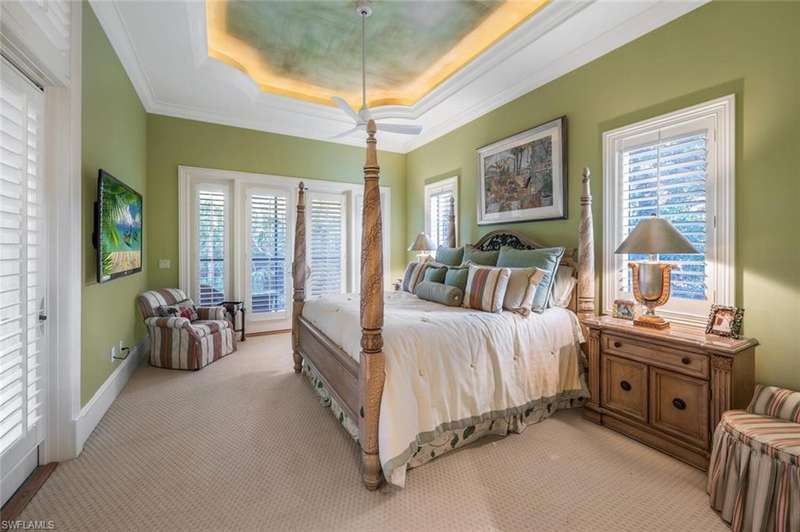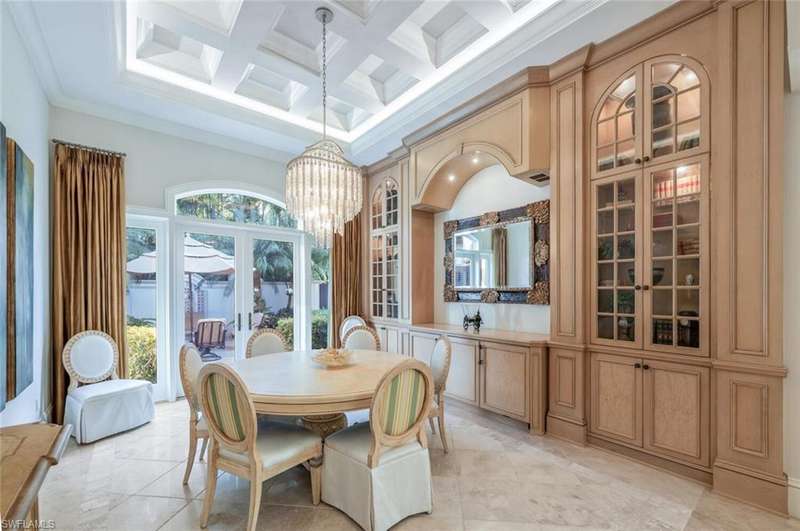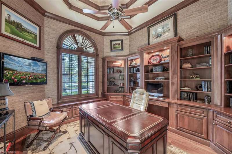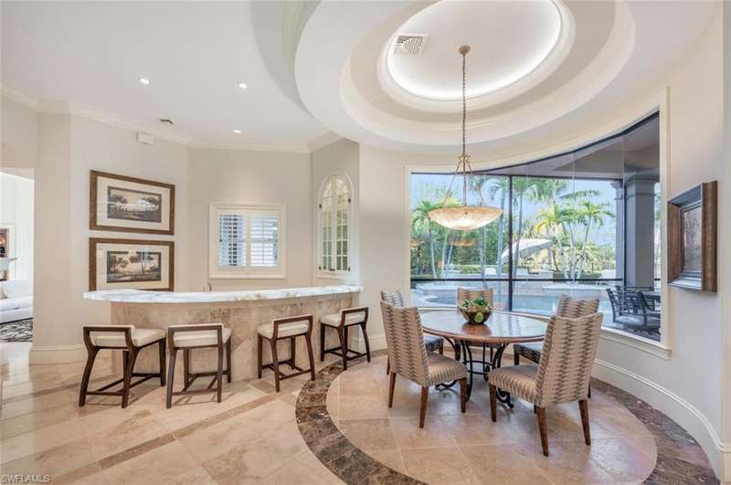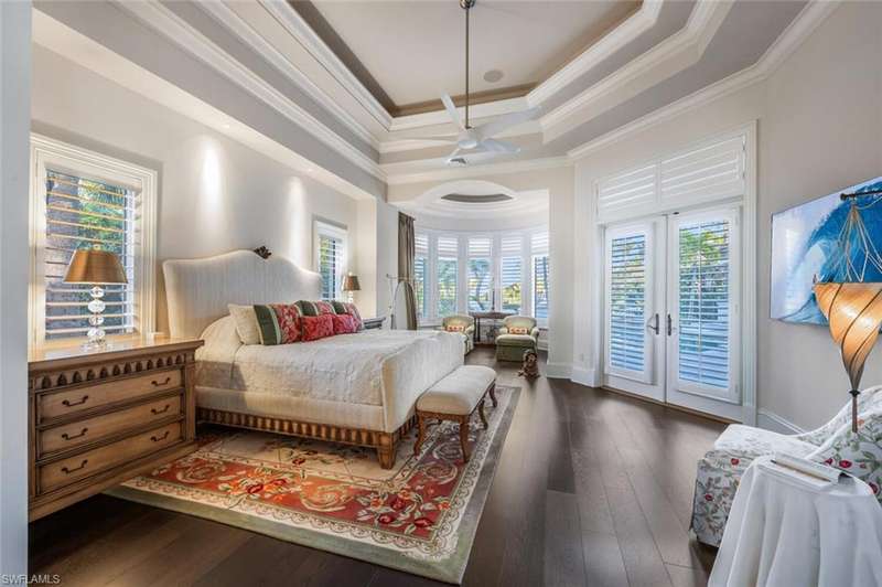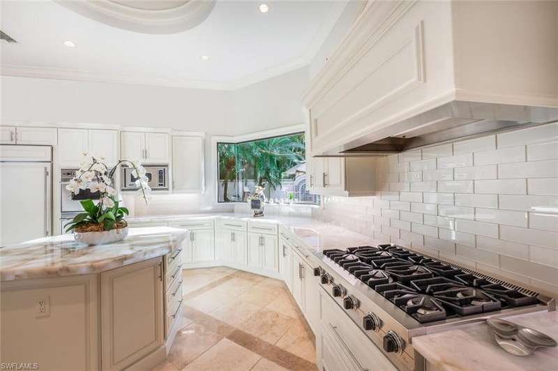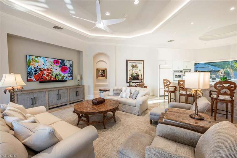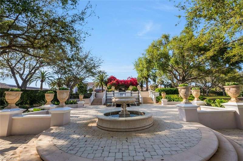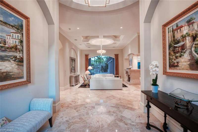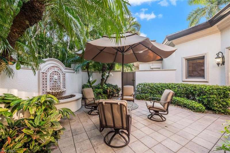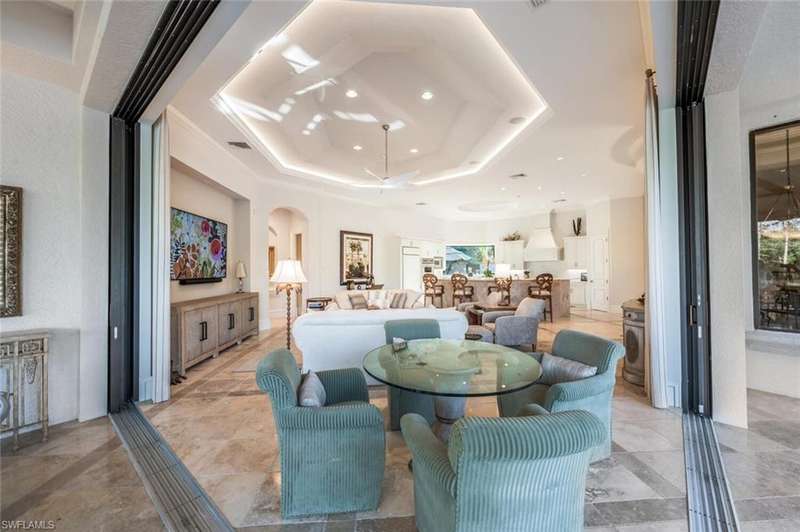 NO WAITING GOLF MEMBERSHIP OFFERED WITH HOME SALE. The Best Priced McGarvey Custom Luxury Estate Home in Mediterra. This stunning property not only welcomes you to unparalleled elegance and grants you immediate access to a highly sought-after golf membership. The inviting paver motor court beckons you forward, setting the stage for the magnificence that lies within. Enter through the grand gallery foyer to be struck by sweeping views of the sparkling pool and serene lake, perfectly framed by the sixth hole of the exquisite golf course. The formal living room dazzles with high seamless windows and a double-sided gas fireplace, creating an indulgent space perfect for relaxation or entertaining guests. Step into a world of sophistication, with soaring ceilings embellished with coffered and tray details, crown moldings, and magnificent custom stone flooring. A chef's kitchen is truly a culinary paradise, boasting abundant white cabinetry, top-tier Viking and Subzero appliances, and lumi