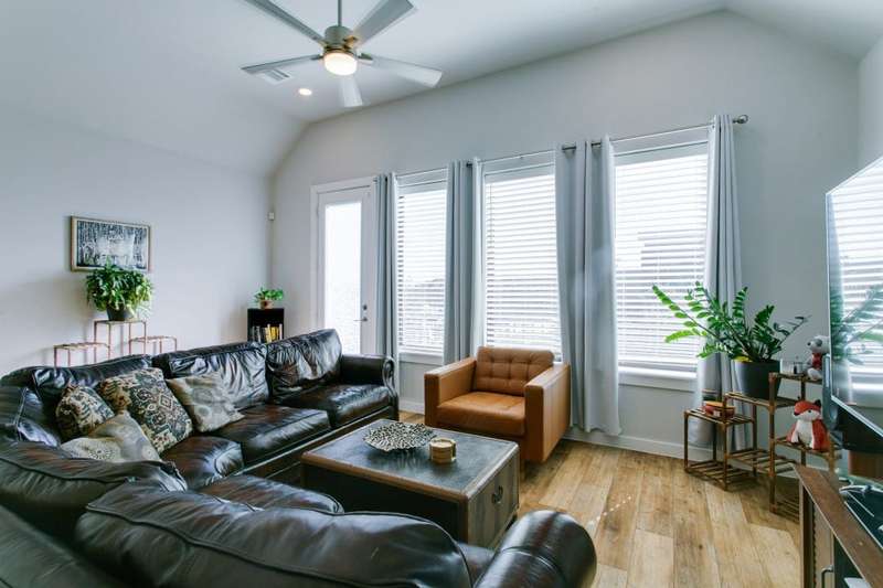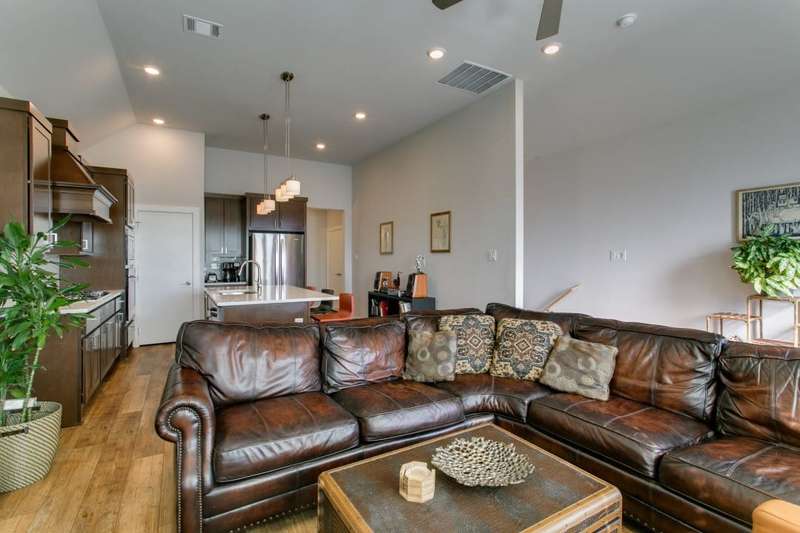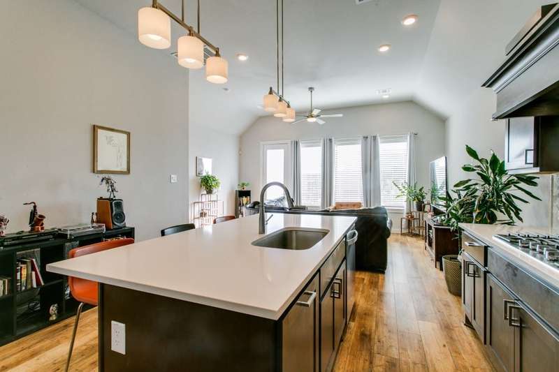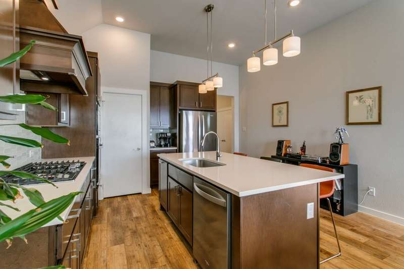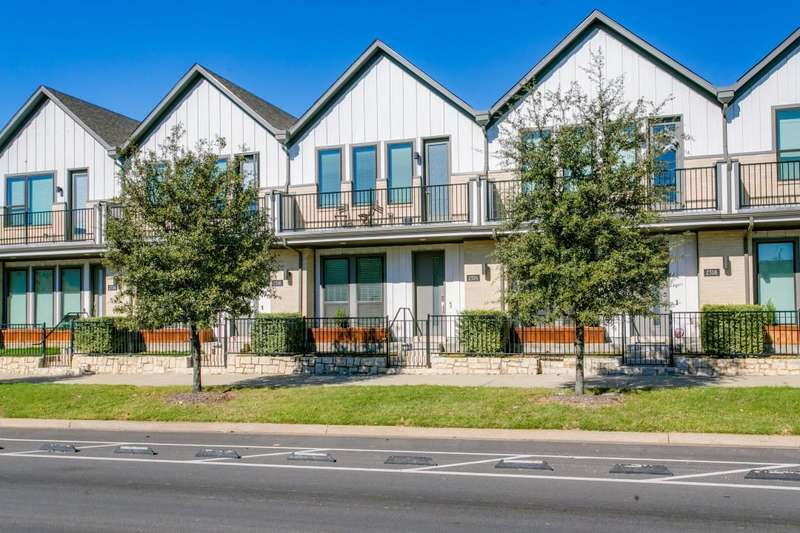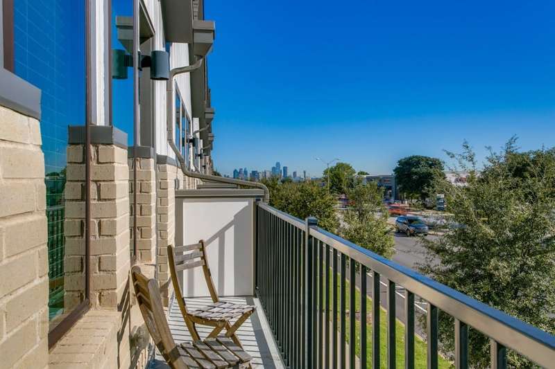 THIS IS IT!!! Be prepared to take in stunning views of Downtown Dallas from your balcony! ~ This handsome two-story townhome is centrally located in North Oak Cliff and is the epitome of sleek sophistication in the lock and leave lifestyle. ~ Light and bright with an inviting open floor plan. The living room has a wall of windows and a walk-out balcony. ~ The centerpiece of the large kitchen is the spacious island with counter seating which is perfect for entertaining friends. Stainless steel appliances and a gas cooktop complement the quartz countertops. ~ Large upstairs primary suite includes a large walk-in closet and an ensuite bath with two sinks and tiled shower. ~ Downstairs, there is a secondary bedroom with an ensuite bath (or secondary primary) which is PERFECT for visitors or roommates. ~ Theres also a bonus area on the first level which makes a great home office. ~ Concrete flooring on the first level plus wood vinyl flooring throughout the 2nd level, so there is NO CARPET! ~ Attached 2-car garage with epoxy flooring. ~ This development features a fenced dog park and guest parking. ~ PRIME LOCATION near restaurants, fitness, Home Depot, and two grocery stores less than a quarter of a mile including the new Sprouts opening June 2025! ~ Easy-breezy access to Downtown, I-30, Bishop Arts District, Trinity Groves, and Stevens Park golf course. ~ A MUST SEE!