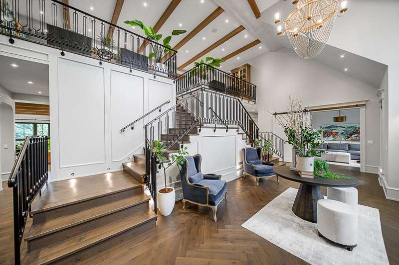 GRAY OWL MANOR; the Finest Estate Offering in the Lower Mainland. This 12,000+ sqft estate is the pinnacle of luxury living. Designed in a timeless French inspired aesthetic & situated on a gated acre manicured to perfection. Custom finishes inside and out for year-round entertaining. Full home automation, an elevator, rich millwork details, limestone fireplaces, temperature controlled wine room, home theatre, and a separate pool house complete with a golf-simulator. Open-concept great room, beautiful kitchen with a striking La Cornue range, and additional prep kitchen, formal dining room with a bar. 8 bedrooms total with the primary suite tucked away on the main floor, plus a two bedroom guest suite. Resort-like outdoor pool and hot tub, with a full sports court. A True Masterpiece!