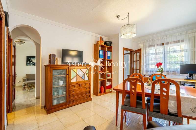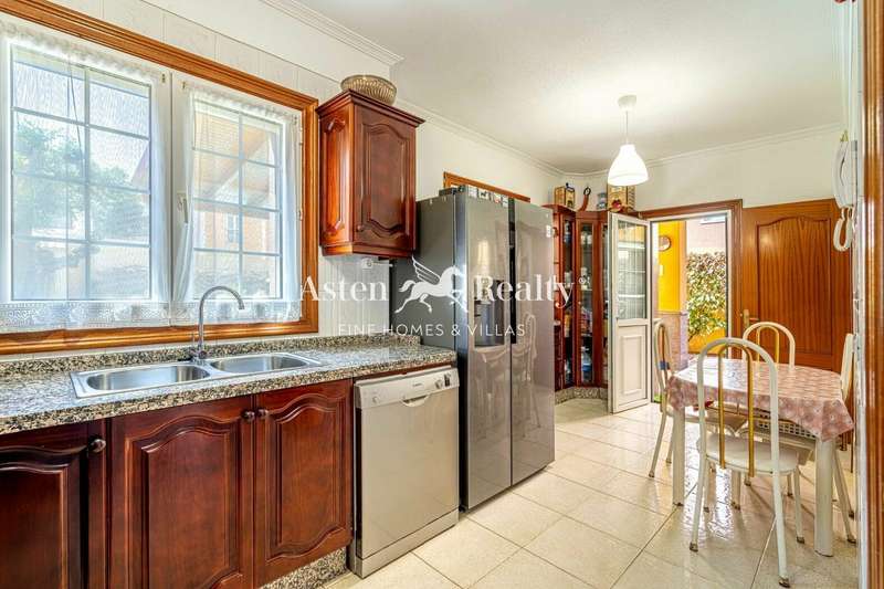 The property is built on two floors, with 3 bedrooms (one of them with fitted wardrobes and en-suite bathroom), an additional bathroom and a guest toilet. The independent kitchen, fully equipped and furnished, has a dining area and a utility room. The spacious living room has a seating area and a sitting room, offering versatility to be used as an office according to the needs of the owners. In addition, the property includes a storage room for added convenience.