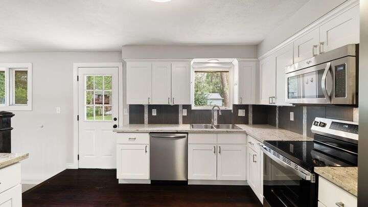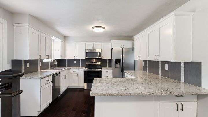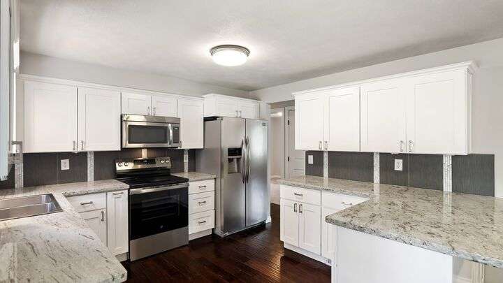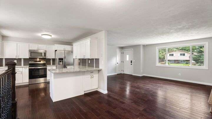 Stop the car! This spacious rancher in the sought-after Camelot neighborhood has been updated throughout with beautiful finishes. Nothing to do here but move in. All new interior paint. All new carpet. New roof in 2016. New gas furnace in 2017. New A/C and new sewer line in 2019. Engineered wood floors. Granite kitchen has stainless appliances & custom tile backsplash. All bathrooms have updated tile and fixtures. Full finished basement includes large family room and bonus craft/exercise room. Fenced back yard has mature landscaping, new concrete patio. Sprinkler system. All appliances stay. Just a few short blocks to Camelot Park. Top-rated Mead schools. Close to shopping, dining, Costco and much more.