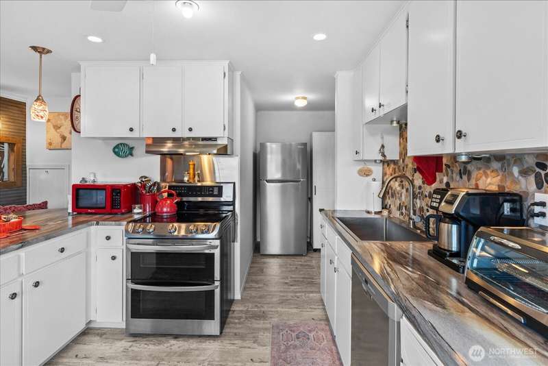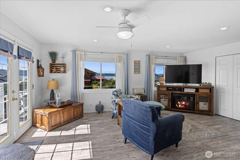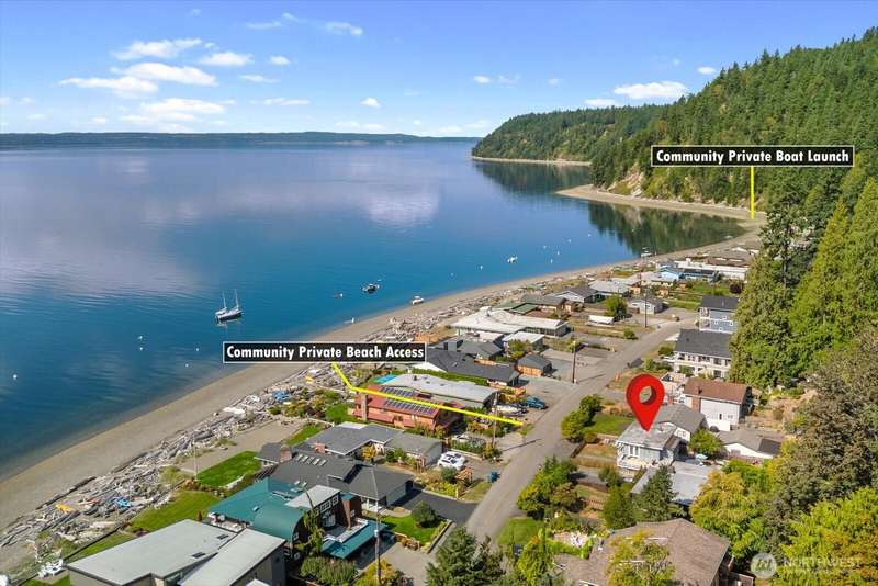Port Susan's best kept secret- Tulare Beach! Enjoy private community beach access & boat launch just steps from your door, plus stunning water views from nearly every angle. The main floor offers an open kitchen w/SS appliances, cozy living room w/brick fireplace & huge bonus room off the garage. Upstairs, take in breathtaking views from the large living area, along with 1/2 bath and generous bedroom. French doors out to spacious upper deck, or there is plenty of room to relax and entertain on the back patio. 2 bed/1.5 baths, a bunk room, and even potential to convert garage space, this home offers flexibility for guests or lifestyle needs. Wired for generator, tons of storage and parking! Fenced yard completes this unique coastal retreat!