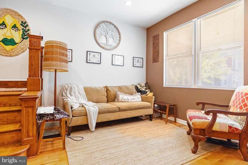 Charm abounds in this 1953 West Germantown Row with spectacular hardwood floors that flow throughout the entire home, first floor laundry, pet-friendly backyard, newer mechanics, central air. Enter through an open floor plan, black board walls, with 3- 4 spacious bedrooms, lovely finished basement, 2 baths. The living room opens to a sun-drenched dining room, outfitted with beautiful decorative chair rail and moldings and a deep closet; the perfect space for hosting! From the dining room, you'll find the updated kitchen, complete with a newer (2019) stainless steel appliances, custom cabinetry, granite countertops and fresh subway tile backsplash. Tucked away is a mudroom with newer red washer, dryer, easily accessible from the new (2019) oversized deck, which includes stairs to the large fenced-in yard filled with trees and native perennial garden. Ascend the lovely staircase with soaring ceilings and landing closet to the second floor, which offers a master bedroom that lead to an additional room, currently used as an office. You'll also find 2 additional bedrooms, and 1 full bathroom. The home also includes a finished basement family room, complete with funky paint colors and full bath! Recent renovations to this home make it truly move-in ready, including but not limited to: updated mechanical systems such as NEW HVAC, new hot water heater, house heater and a new roof (2019). And all in one of the most sought after neighborhoods in Philadelphia - Southwest Germantown. Its proximity to public transit, Center City and the Wissahickon can't be beat. Walk to Germantown Ave favorites, or stroll to neighborhood to yoga studios! Make this much-loved home in a wonderful neighborhood your own! Homespun charm with a hipster edge - Welcome to one of the most colorful and friendly blocks in all of West Germantown. If you value independent thinking, have distinct taste, and appreciate culture and creativity, this is a home where you can hang your heart.