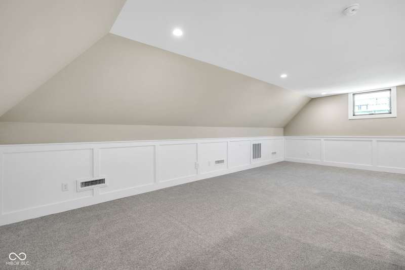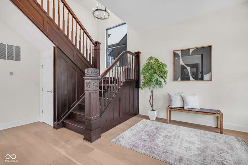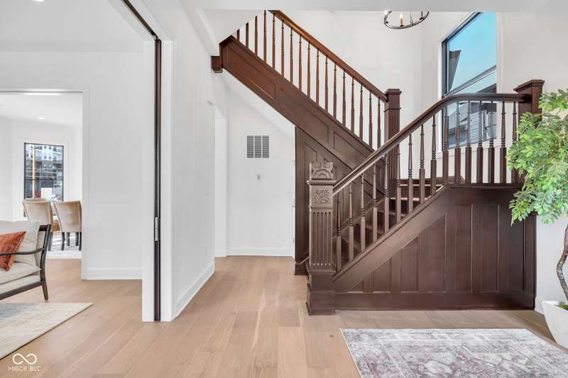 Experience the charm of history without the headaches of an old home in this beautifully restored historic residence in the heart of Old Southside-just steps from Lucas Oil Stadium and Lilly. Step inside to find a stunningly preserved staircase, mantel, and pocket doors that showcase the craftsmanship of a bygone era. High-quality windows bring in abundant natural light throughout. The main level features a dedicated office (or optional fourth bedroom) and a full bath, perfect for guests or flexible living. The kitchen features paneled Fisher & Paykel appliances, granite countertops, and soft classic finishes. A convenient mudroom connects to the attached garage, offering additional storage and organization. Up the sunlit preserved staircase, you'll find three spacious bedrooms, including a luxurious primary suite with a comfort-height dual vanity and a walk-in shower featuring triple showerheads. The large upstairs laundry room adds everyday convenience. Continue the wood treads to the finished third floor-an inviting, open space ideal for a secondary living area, home gym, or creative studio. Enjoy walkable access to downtown Indianapolis dining, entertainment, and amenities from this exceptional historic gem that truly combines character, comfort, and location.