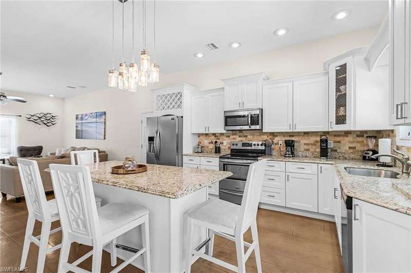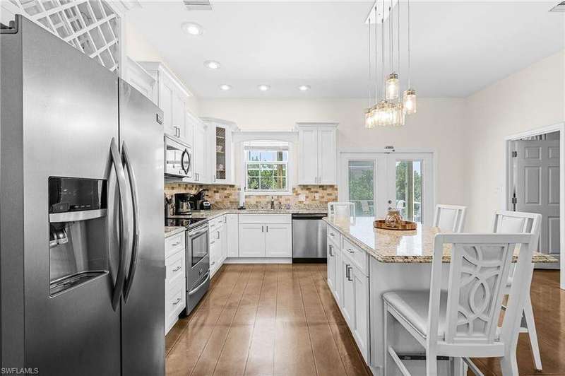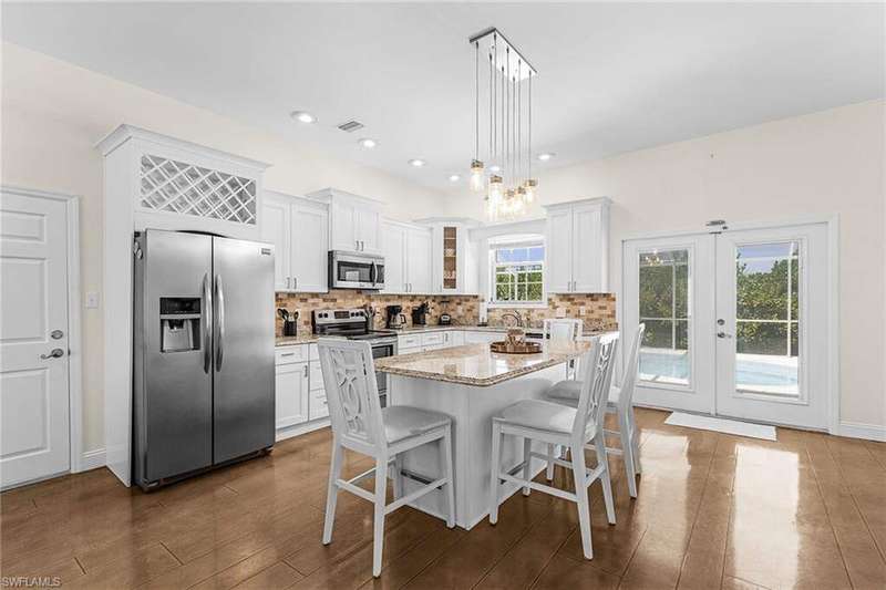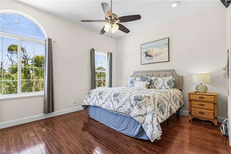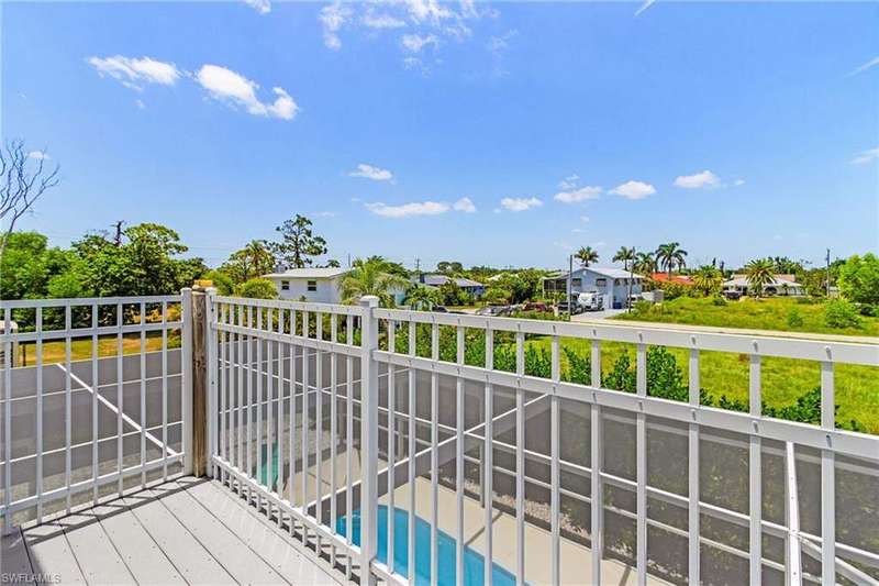 Island Living at Its Best! Have you been looking for a LARGE GARAGE and a POOL? This 3-bed, 3-bath home offers the perfect mix of comfort and function. Enjoy an open floor plan with a spacious kitchen featuring granite counters, stainless steel appliances, a large island, and a wine rack. French doors lead to a pool and lanai-great for entertaining! Built with upgrades like hurricane-impact windows and doors, a metal roof, ManaBloc plumbing, and stained concrete floors downstairs. Upstairs, you'll find hardwood floors, a large master suite with a clawfoot tub, a walk-in shower, and a closet, plus guest rooms with balcony access overlooking the pool. The oversized garage has 10' wide by 12' high doors and 14' ceilings-ideal for boats, RVs, or extra vehicles. Close to shops, dining, boat ramps, and top-tier fishing spots. Your Pine Island paradise awaits!