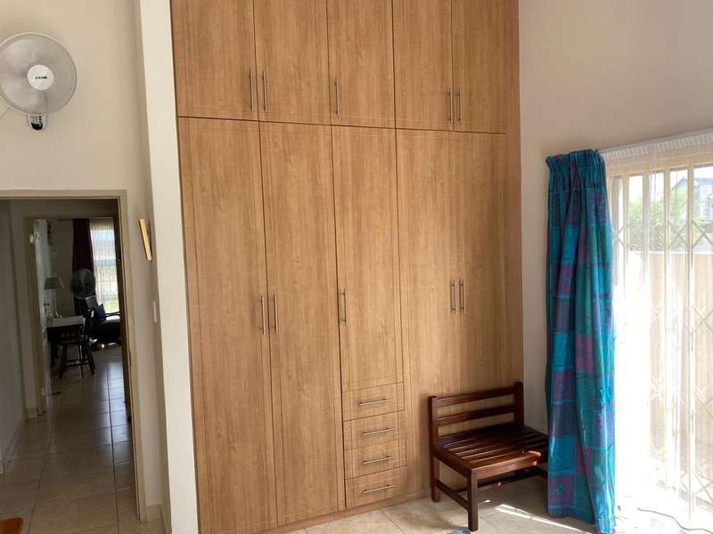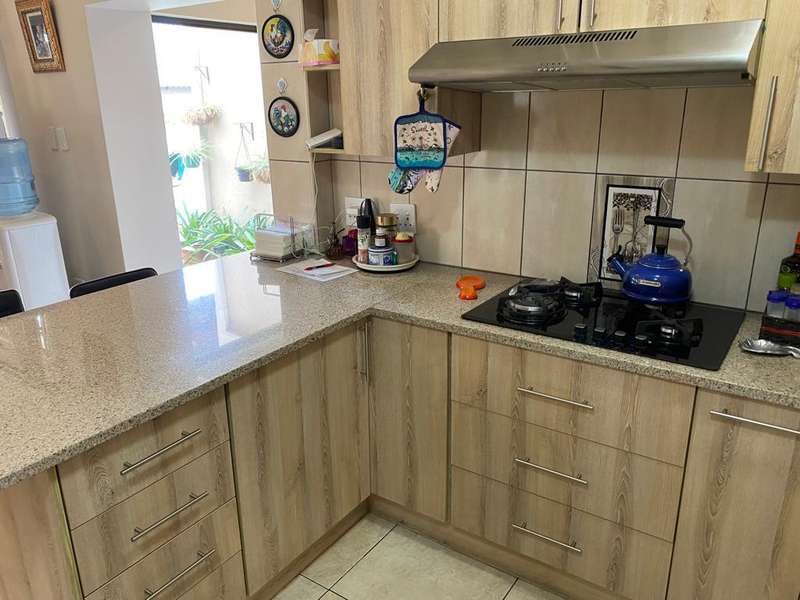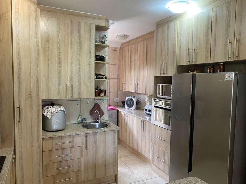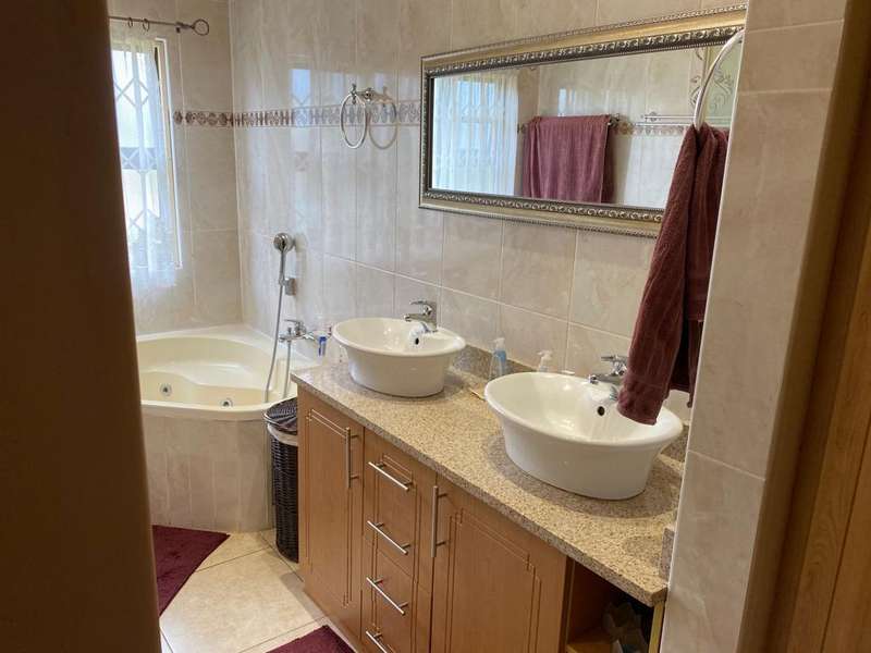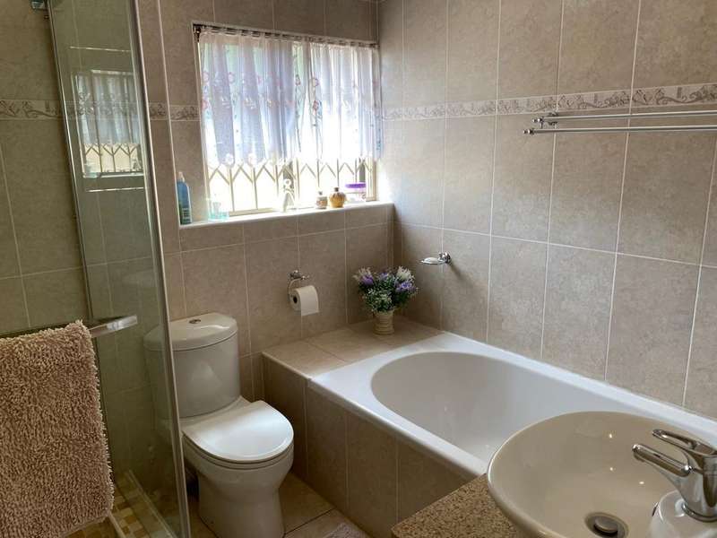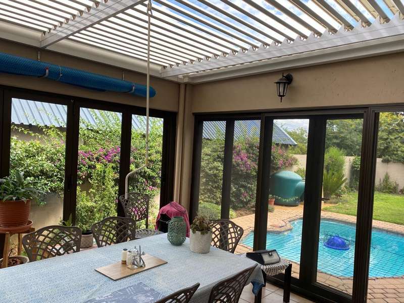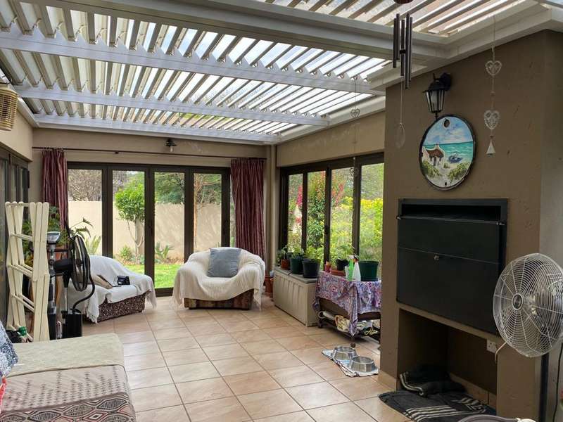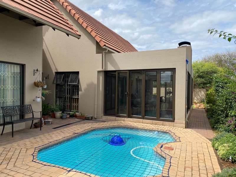 LOVELY 4 BEDROOM FAMILY HOME This spacious 4 bedroom family home features an enclosed patio with built-in braai and a splash pool for those hot summer days. The lounge/dining room area is separated by a gas burning fireplace, which will easily heat the entire area. The main bedroom is en-suite and has a walk-in change room cupboards. The remaining 3 bedrooms are serviced by a 2nd full bathroom, as well as a guest toilet. The kitchen is spacious with a large pantry cupboard and separate scullery, with a courtyard, and a security gate. All windows and doors are fitted with expandable doors. The scullery and patio door are also fitted with insect screens. Besides the double garage, there's space for further 6 vehicles behind gates. Realistic offers will be considered, call for an appointment to view.