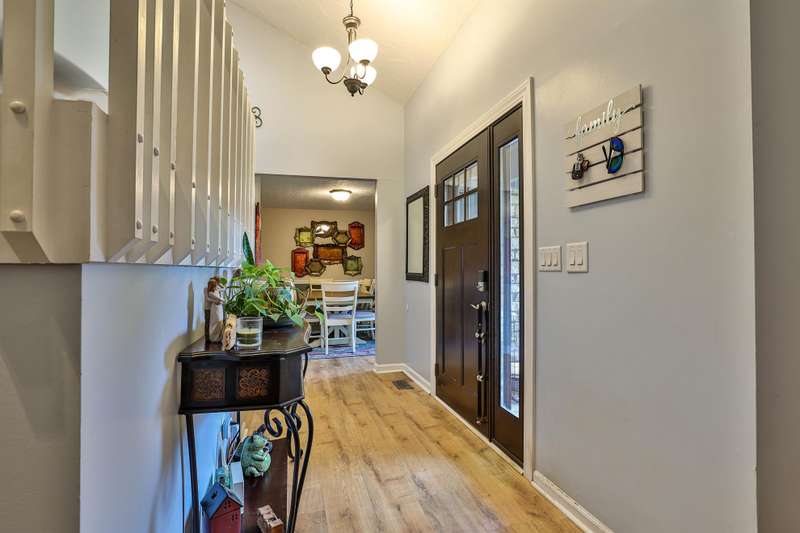 Discover this stunning 4 bedroom, 3 full bath contemporary home nestled on a desirable double lot in Hidden Valley. Step inside to find beautiful hardwood floors throughout and a welcoming skylight entry that fills the home with natural light. The main-level owner's suite offers an adjoining bath and private walkout to the deck. Upstairs, three spacious bedrooms and an indoor balcony overlook the open living room, creating a dramatic yet inviting feel. The finished basement expands your living space with a walkout to the covered patio, plus an additional bedroom/office and full bathperfect for guests or a home office.