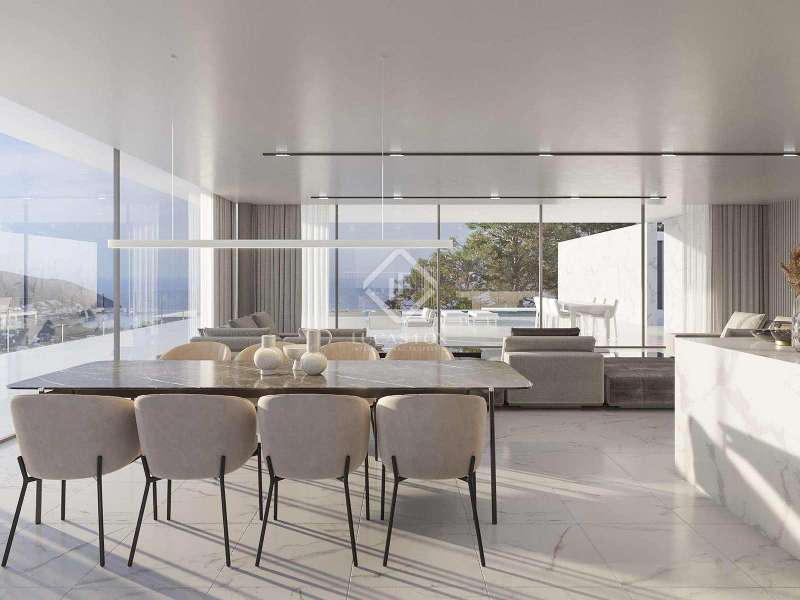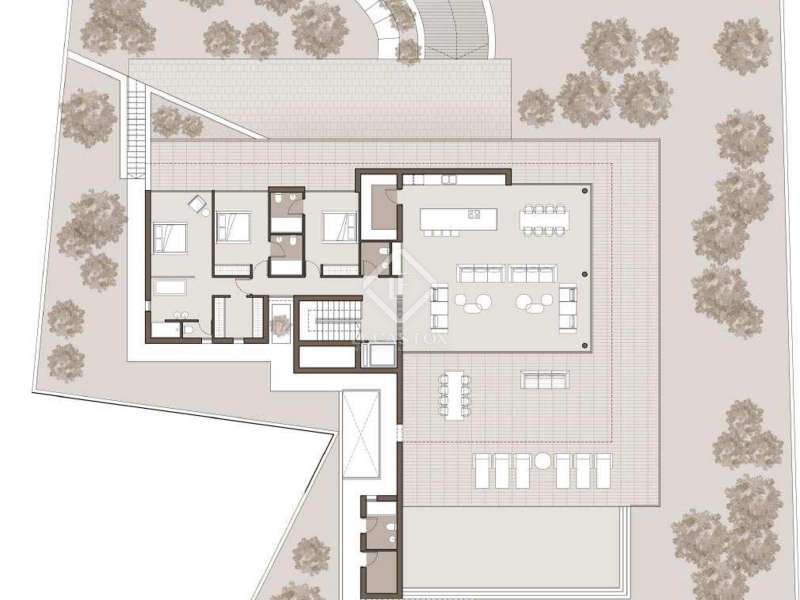 This beautiful project of stone finishes, has 2 floors that are connected with a modern internal staircase. The ground floor has two bedrooms with en-suite bathrooms, a kitchen, a living-dining room, a utility room and a toilet. The kitchen is fully equipped and it is open to the living room. The sliding glass doors give direct access to a large terrace and the pool. The upper floor has another bedroom with a bathroom. The house has air conditioning and underfloor heating. It has an automatic entrance door with an independent pedestrian entrance. On the same level as the main house is the pool. It includes garden to be customized by the client.