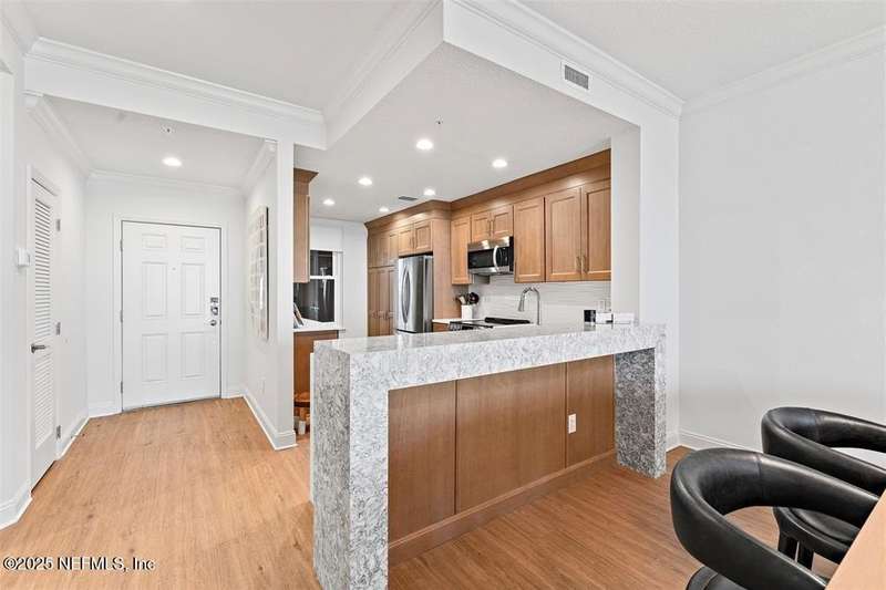 Welcome to Ocean Place-an oceanfront condo designed for comfortable island living. Perched on the 4th floor, this residence offers sweeping views of the Atlantic Ocean, gorgeous sunrises, and front-row seats to the Ritz-Carlton fireworks from the balcony. The condo is fully updated ('23-'24) and well maintained. The kitchen features custom cabinetry with terrific storage, quartz waterfall countertops, and all new appliances (including a wine cooler and W/D). The primary suite offers ocean views, a blackout blinds for restful nights, an upgraded spa-like bath, and custom closet shelving. Additional features include hardwood cabinets in the laundry room, a finished storage room with built-in shelving, custom blinds throughout, and all new lighting and fans. Comfort upgrades include a new A/C and heat pump, plus a new hot water heater with a Flo by Moen control valve. Ocean Place is a gated community, approved for short-term rentals, with two beachfront pools and private boardwalks.