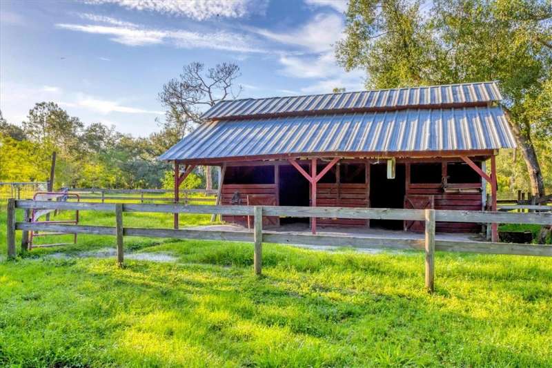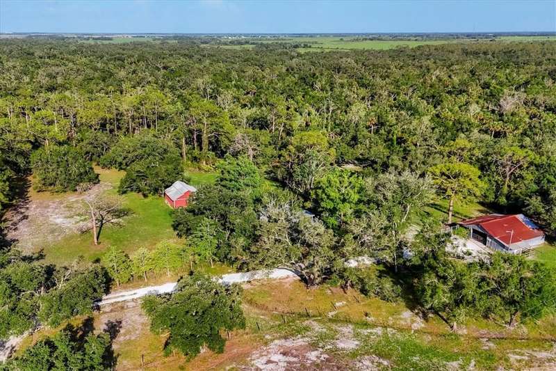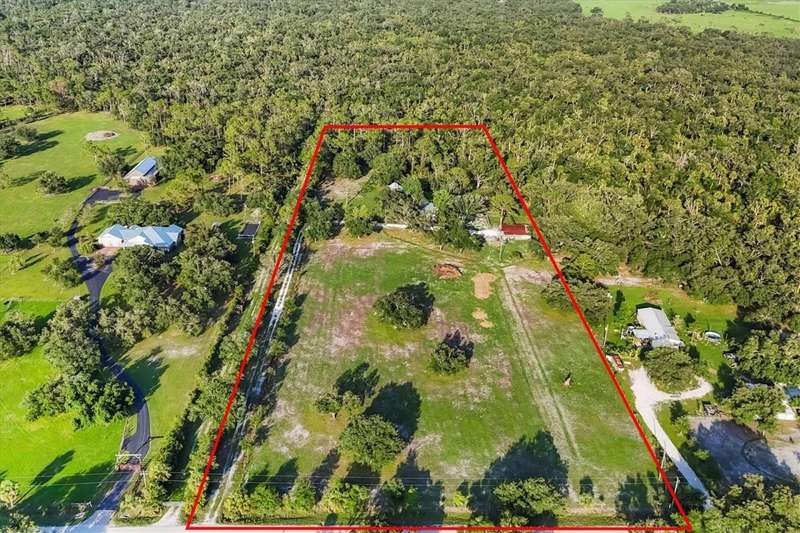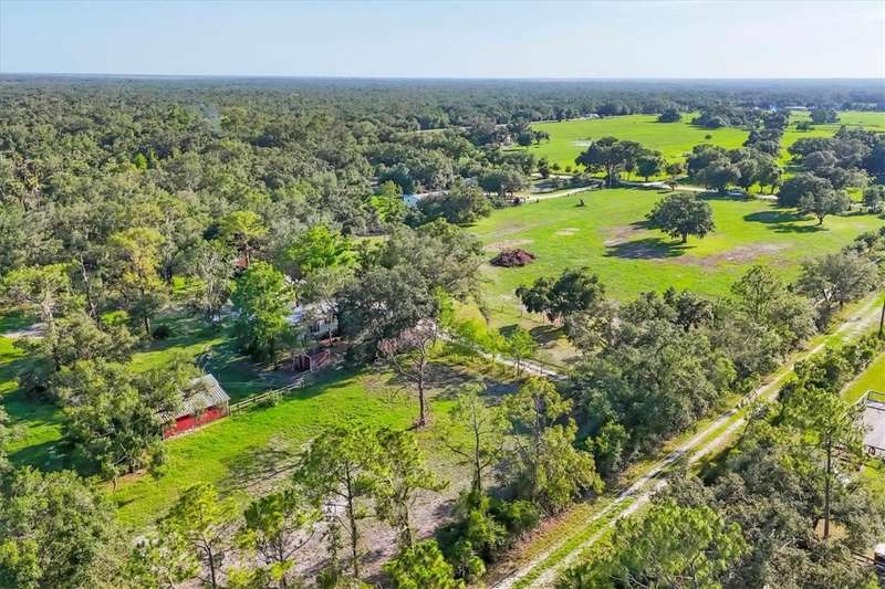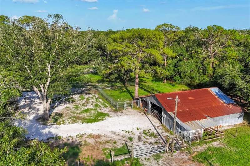 Great Investment on Country Acreage!!! Wonderful 2 bedroom/2 bath home on 8.38 acres in the quiet Countryside of Myakka City. New metal roof was put on home in 2023. Has a 2 Stall horse barn and a second metal roof work barn with electricity. Has a dog run and a Chicken coop as well. Home needs updating.