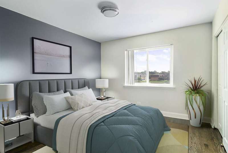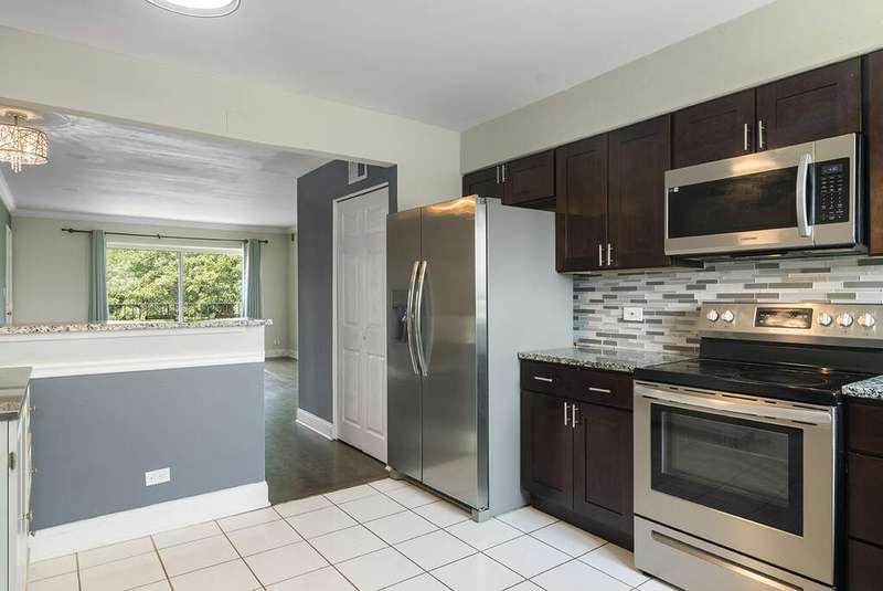Welcome to Bay Colony! This top floor condo features 2 spacious bedrooms, a full bath and is located in prime area within the community offering amazing views of the pond from the kitchen and primary bedroom. Highlights include hardwood floors in the living room, dining room and both bedrooms. The remodeled kitchen boasts granite counters, stainless steel appliances, new cabinets, breakfast bar and table space. The spacious living room has plenty of natural sunlight from the oversized sliding doors leading to the balcony overlooking beautiful green space. Perfect for an active lifestyle, you will appreciate the community amenities including the outdoor pool, tennis courts, basketball court, clubhouse, playground and walking path around the pond. Includes complimentary laundry on the main floor, an assigned parking space and plenty of guest parking. All this plus pet friendly and investor friendly too - rentals are allowed! Don't miss the opportunity to own or invest in this super convenient condo in a prime location near expressways, area hospitals, bus transportation, shopping, dining, schools & more. Welcome Home!