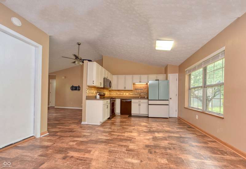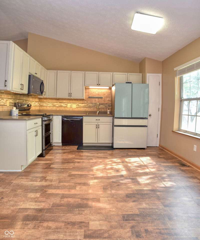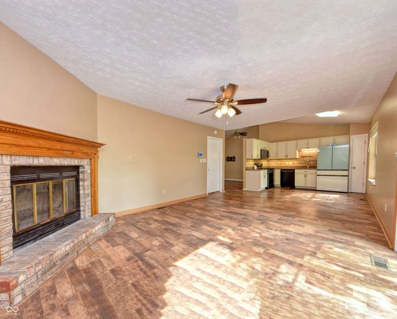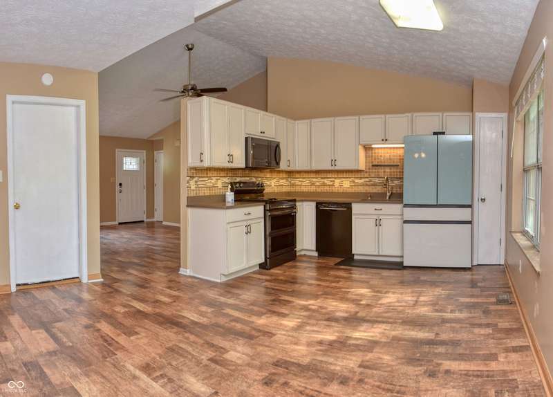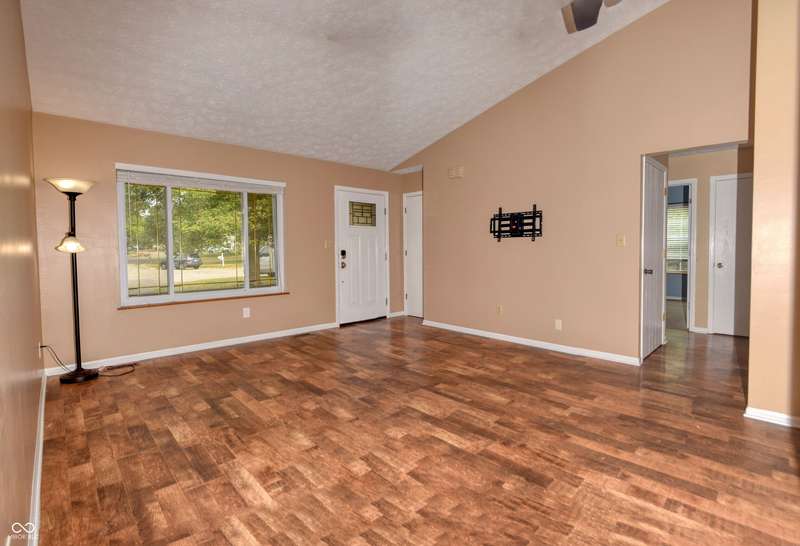 This three bedroom, two full bathrooms ranch home is ready for you to move right in! Fresh paint & new carpet throughout home. New roof, HVAC & water heater. Kitchen has totally been remodeled with all new cabinets & quartz countertops. New kitchen appliances stay with home. The family room provides an exceptional space to unwind, boasting a high ceiling that amplifies the sense of spaciousness, along with a vaulted ceiling, and woodburning fireplace to gather around. Murphy bed will stay with the home. Enjoy the outdoors on front porch and rear patio. This Indianapolis residence provides the perfect canvas to create lasting memories!