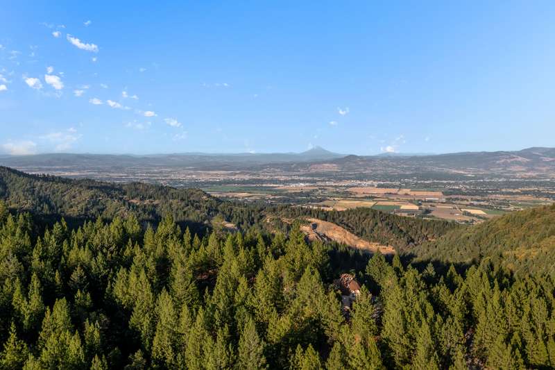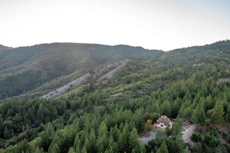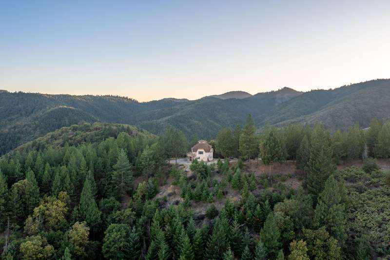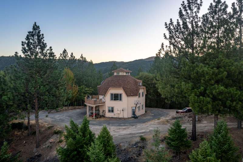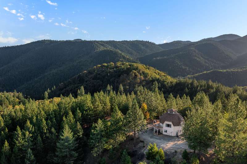 1528 Morton Way in Jacksonville, offers a unique secluded living experience with beautiful views of the mountains, valleys, and city. Dome-Shaped home is approximately 1992 sq ft, 3 bed 2 bath home with a finished loft and garage. situated on just over 40 acres, location offers access to hiking, biking, ATV riding, Dome-Shaped homes are known for energy efficiency and distinct aesthetic. Large deck provides outdoor space and panoramic views. Located on the ground floor is the private guest suite w/ its own living area including a woodstove, wet bar, bedroom/bathroom, &attached single car garage. On the middle or main floor, is the kitchen, food pantry, breakfast nook, living room, main bedroom ensuite, and walk in closet. The third, upper loft area, is filled with natural light, and is open to main living area. Property is a certified tree farm, close to town, yet far away and borders Jacksonville Forest Park.